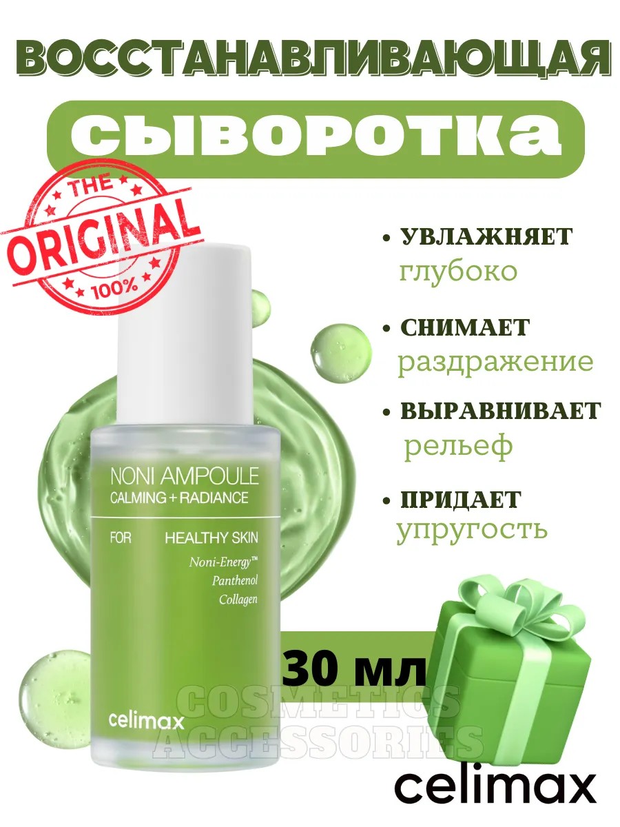 Сыворотка Celimax The Real Noni Energy Ampoule восстанавливает и укрепляет кожу, смягчает, выравнивает рельеф и уменьшает воспаление, снимает раздражение и зуд, укрепляет защитный барьер.