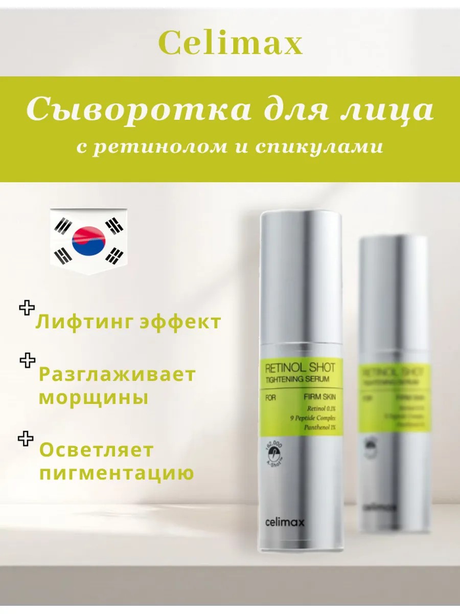 Подтягивающая сыворотка с ретинолом и микроиглами Celimax The Vita−A Retinol Shot Tightening Serum сыворотка селимакс ретинол шот обеспечивает интенсивный уход для кожи с признаками старения и симптомами акне. Обладает лёгкой увлажняющей текстурой, быстро впитывается, не оставляет ощущения стянутости и липкости.