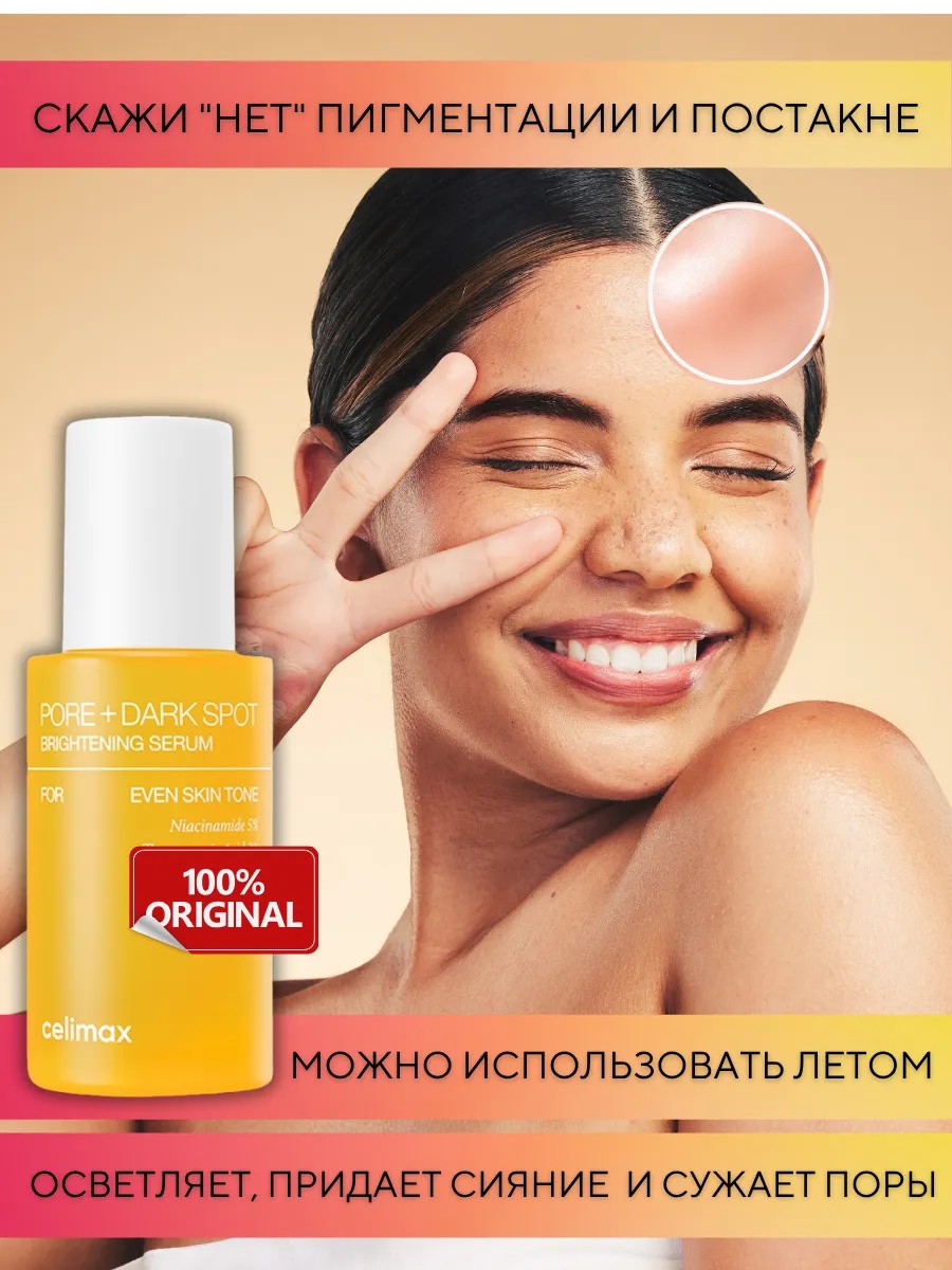 Сыворотка CelimaxPore+Dark Spot Brightening Serum мягко осветляет пигментацию и постакне, улучшает общий тон, устраняет тусклость и дарит здоровое сияние. Уровень pH 5.9-7.9.