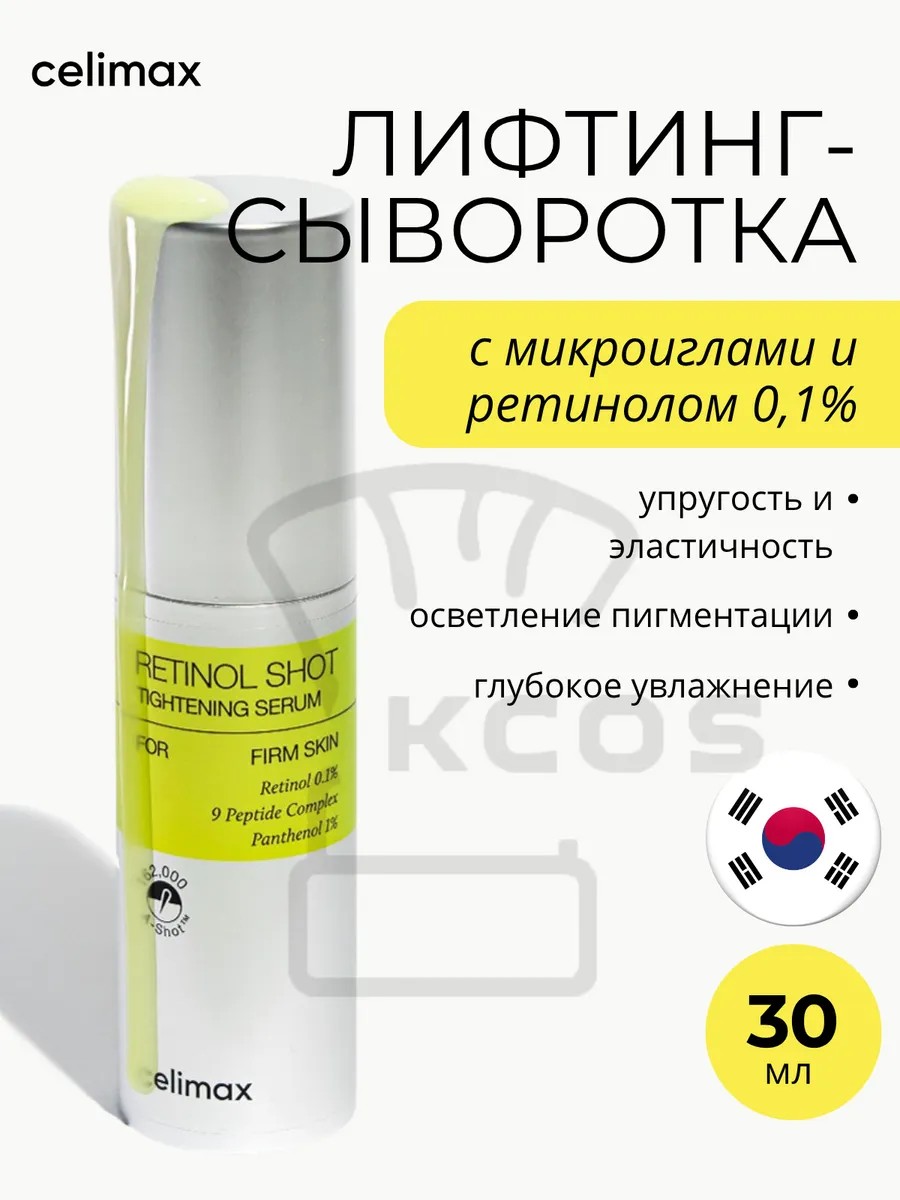 Подтягивающая сыворотка с ретинолом и микроиглами Celimax The Vita−A Retinol Shot Tightening Serum - создана специально для борьбы с признаками старения и улучшения состояния кожи с акне.
