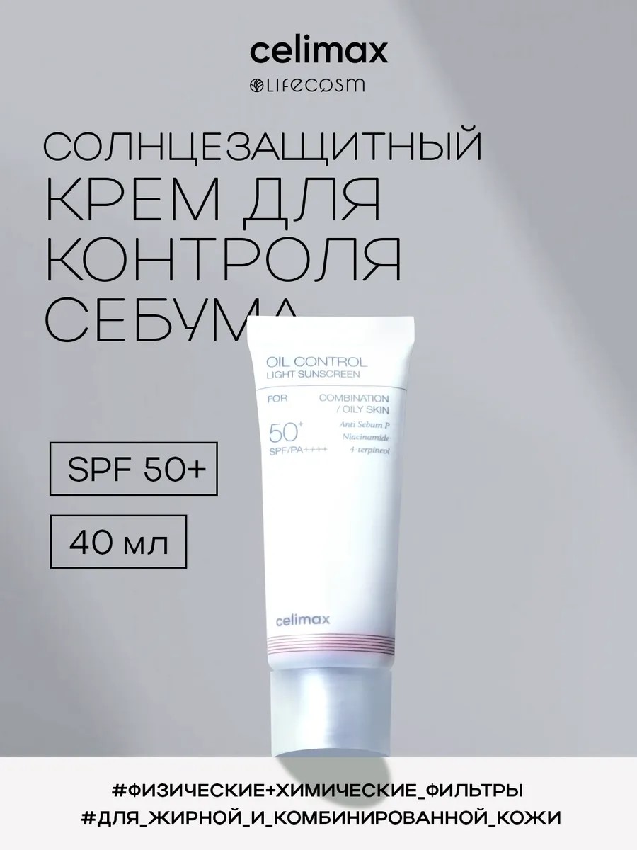Celimax Oil Control Light Sunscreen SPF50+ PA++++ — это легкий солнцезащитный крем нового поколения, разработанный специально для жирной, комбинированной и проблемной кожи. Средство обеспечивает мощную защиту от УФ-лучей, предотвращая фотостарение, пигментацию и раздражение, одновременно регулируя выработку кожного себума и оставляя матовый финиш.