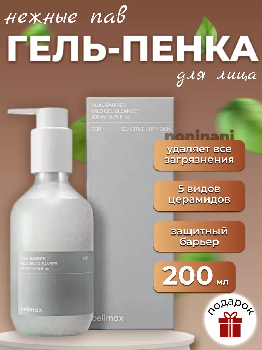 Нежный гель-пенка для умывания с комплексом церамидов Celimax Dual Barrier Mild Gel Cleanser мягко очищает кожу не нарушая её барьерных функций и не повреждая липидный слой. Продукт на основе растительных ПАВов деликатно удаляет все загрязнения, остатки кожного сала и макияжа, идеально подходит для сухой и чувствительной кожи.