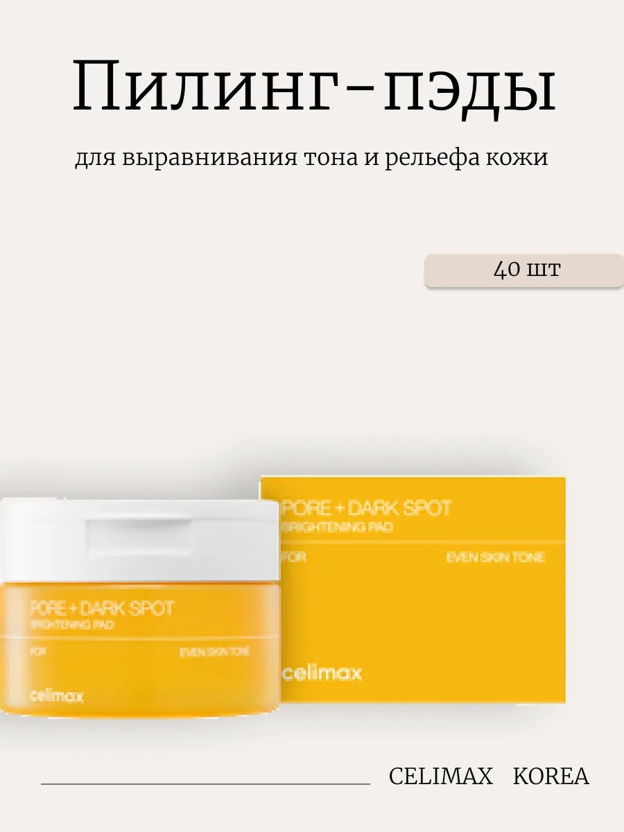 | Комплектация | Celimax Тонер-пэды для выравнивания тона и рельефа кожи Pore+Dark Spot Brightening Pad |