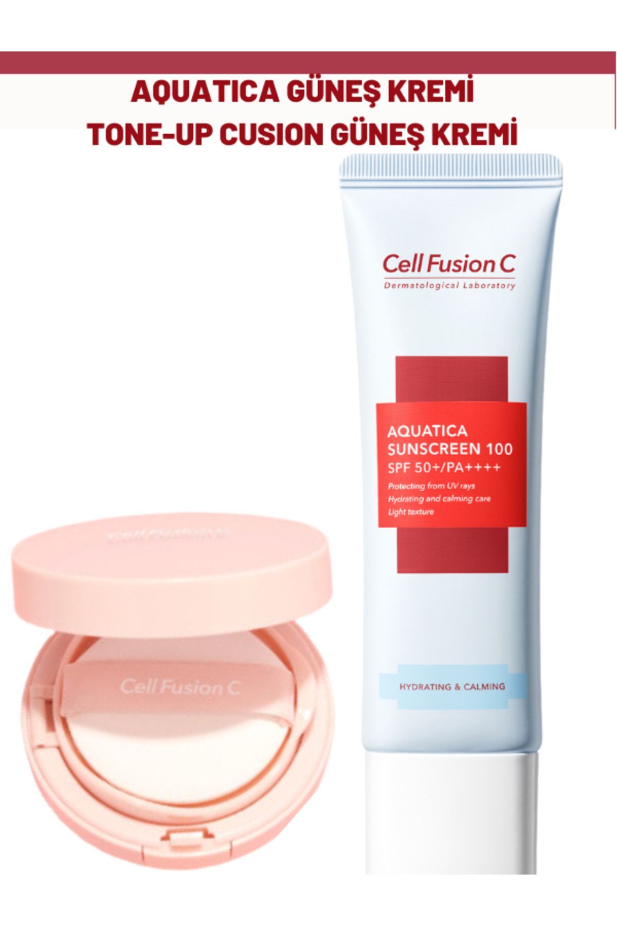 Cell Fusion C Aquatica High Protection and Tone Up Cusion Sunscreen Set for All Skin Types
