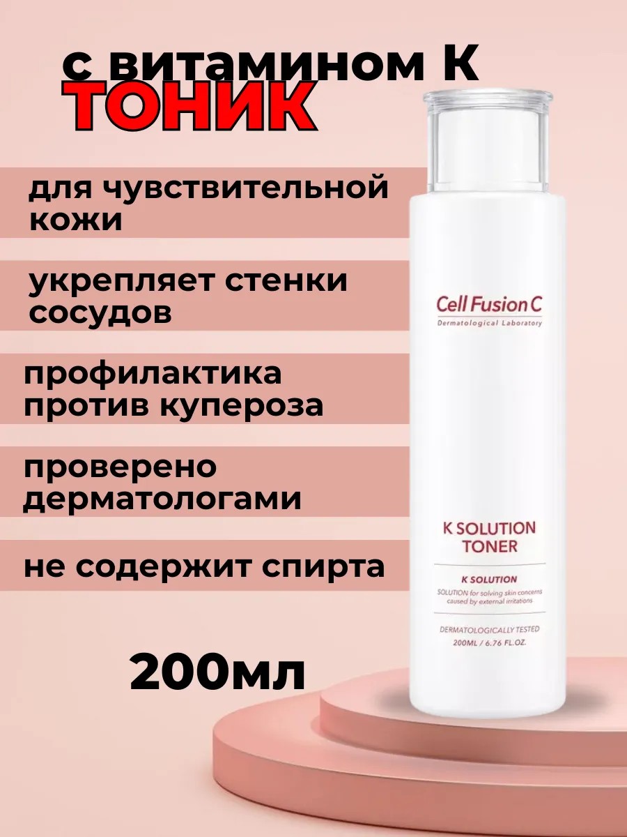 Тоник для лица увлажняющий с витамином K – это профессиональная корейская уходовая косметика ,которая поможет вашей коже выглядеть здоровой и сияющей. Благодаря специальной формуле, обогащенной гиалуроновой кислотой и аргинином, он глубоко проникает в эпидермис, увлажняя ее и предотвращая ее сухость. В результате ваша кожа становится более мягкой, эластичной и сияющей. Тонер с витамином K Solution Toner также помогает бороться с возрастными изменениями кожи. Витамин K, содержащийся в составе , способствует укреплению стенок капилляров и улучшению микроциркуляции крови, снимает раздражение, уменьшает покраснение и помогает справиться с другими неприятными ощущениями, связанными с чувствительной кожей. препарат влияет на сосудистую стенку, нормализуя просвет капилляров. Не вызывает раздражений и воспалений даже после лазерных процедур, назначается после хирургических вмешательств. Тоник Cell Fusion K Solution — прекрасное решение для мужчин и женщин, кто устал от покраснений, аллергических реакций и капиллярных «сеточек». Восприимчивая кожа, склонная к аллергии и куперозу, великолепно реагирует на витамин К. Tonic прекрасный уход за лицом снижает чувствительность и визуально сглаживает проявления купероза. В его состав входят только натуральные ингредиенты, и благодаря этому, лиц в совершенстве укрепляет стенки сосудов, снимает покраснения и устраняет посттравматические изменения. Способствует проникновению активных компонентов из препаратов, нанесенных после него. Препарат устраняет следы очищающих средств и нормализует ph-баланс кожи. В основе препаратов K Solution Lotion и K Solution Toner из Кореи активный успокаивающий комплекс, состоящий из натуральных экстрактов и витамина К. Не содержит спирта.