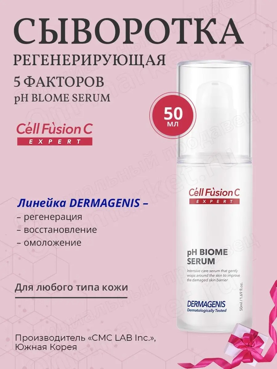 Сыворотка pH BIOME Serum от корейского бренда премиальной косметики Cell Fusion C, представляет собой инновационное средство для ухода за лицом, разработанное с использованием передовых технологий и активных компонентов. Одним из ключевых компонентов сыворотки является церамид, который является неотъемлемой частью структуры кожи. Он помогает укрепить естественный барьер кожи, предотвращая потерю влаги и защищая ее от внешних воздействий. Бифидобактерия в составе сыворотки способствует балансу микробиома кожи. Микробиом - это уникальная экосистема микроорганизмов, которая находится на поверхности кожи. Играет важную роль в поддержании ее здоровья и красоты. Бифидобактерия помогает укрепить микробиом и защитить кожу от вредных воздействий окружающей среды.Экстракт артишока, который обладает противовоспалительными свойствами и способствует регенерации кожи.Для усиления эффекта сыворотки в ее состав входит пептидный комплекс - включает 8 пептидов, которые способствуют регенерации кожи, восстановлению коллагенового каркаса, профилактике фотостарения, омоложению и сохранению ровного тона кожи.Сыворотка pH BIOME Serum содержит Nectarbiome - инновационный компонент, который содержит ферменты дрожжей, выращенные на нектаре растения хойя карноза. Ферменты способствуют омоложению микробиома кожи, нормализуют выработку антибактериальных пептидов, снижают трансэпидермальную потерю воды, повышают эластичность кожи.