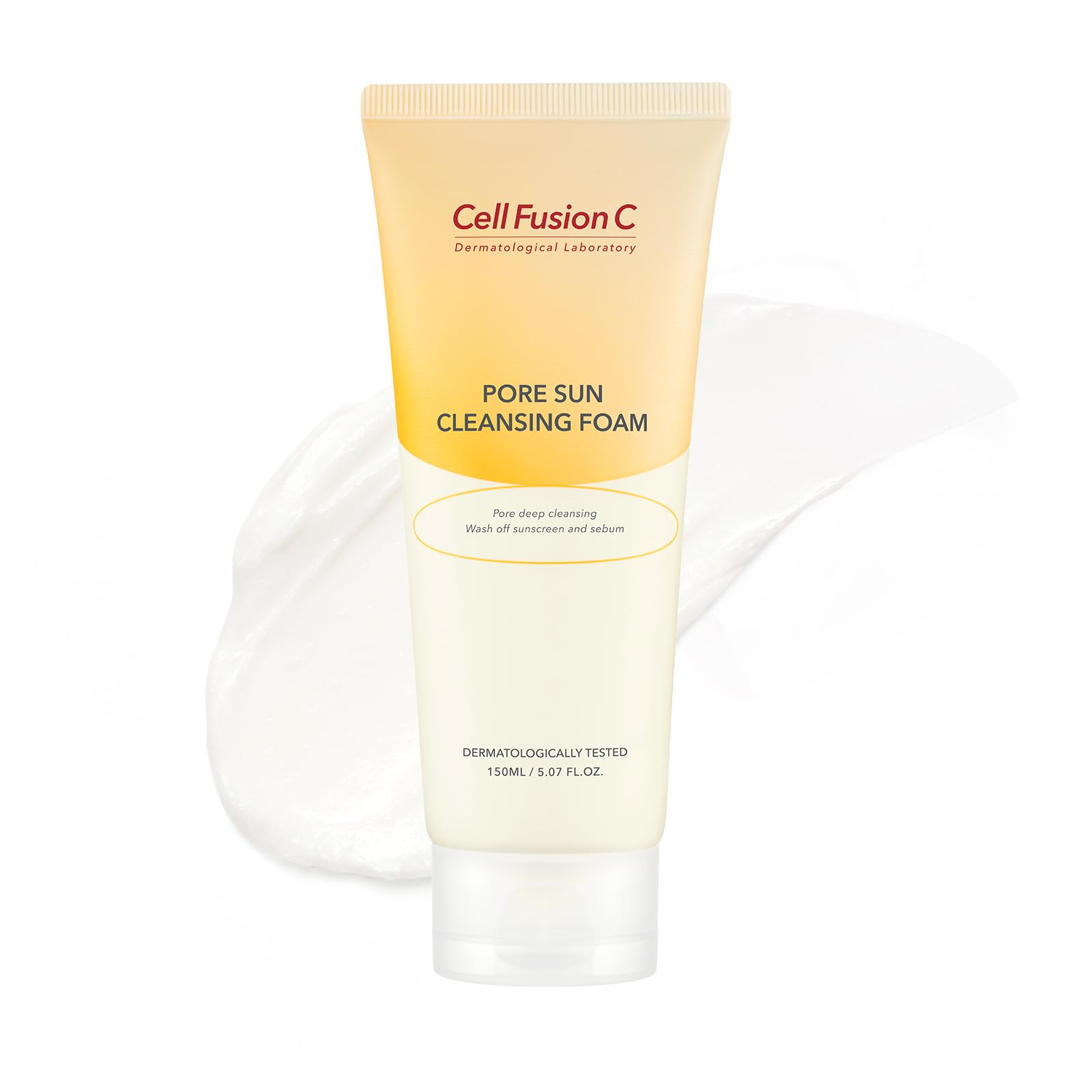 Cell Fusion C Pore Sun Cleansing Foam Facial Cleanser LHA & Linoleic Acid Removes Blackheads Face Wash for Sensitive Skin 5.07 fl.oz / 150ml