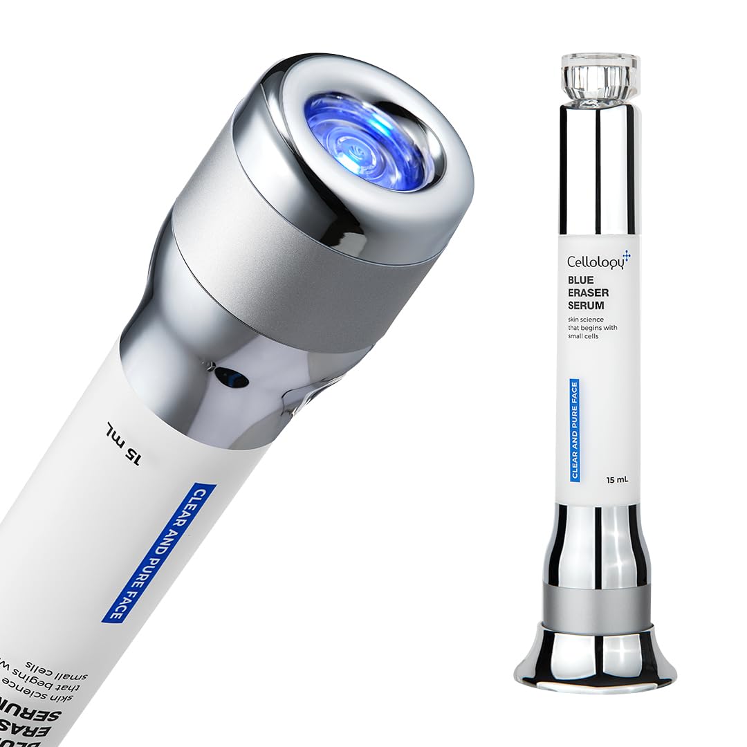 Cellology Blue Eraser Serum - All-in-One LED Serum with Micro Spicules & Tea Tree Leaf Water Skin Soothing for Troubled & Sensitive Skin Korean Skincare 0.50 fl.oz.