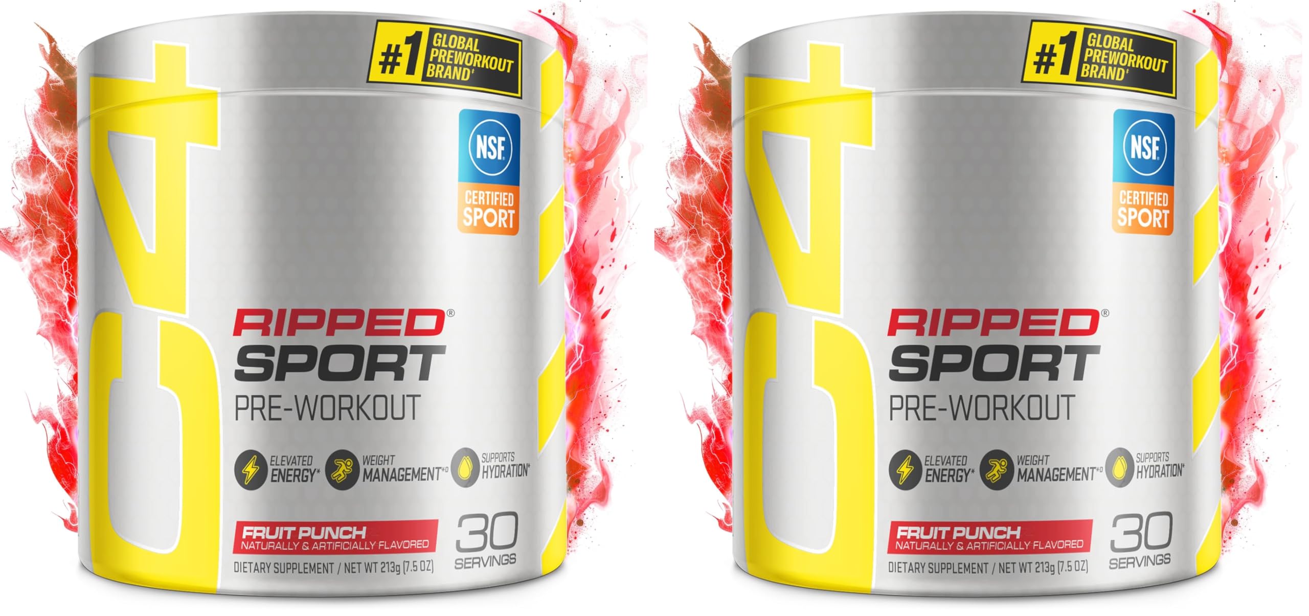 Cellucor C4 Ripped Sport Pre Workout Powder Fruit Punch - NSF Certified for Sport + Sugar Free Preworkout Energy Supplement for Men & Women | 135mg Caffeine | 30 Servings (Pack of 2)