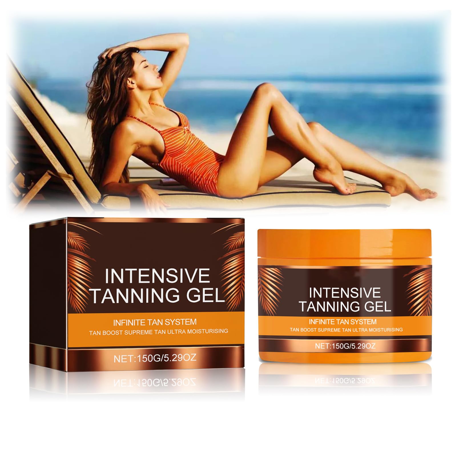 -[For All Skin Types] Regardless of your skin type, all you need to do is spend a little time in the natural sun or in a sunbed, expecting fast results and enjoy the natural bronzing experience. -[How to Use] Apply soft tanning gel evenly over the entire body, before sun exposure and reapply frequently, especially after swimming, toweling and perspiring. Avoid sun exposure during midday hours. -[Accelerated Tanning] Designed for use on sunbeds or during outdoor sun exposure, the luxury tanning gel accelerates the tanning process, allowing you to achieve a beautifully bronzed complexion with reduced sun or sunbed exposure. -[Post-Sun Care] Say goodbye to dry skin after sunbathing. The tanning gel addresses post-sun concerns, providing relief to dry skin and nourishing it. -[Luxury Intensive Tanning Gel] This luxury intense tanning gel doesn't just feel amazing, it'll help you achieve a natural, deeper colorinstant tan with less exposure.