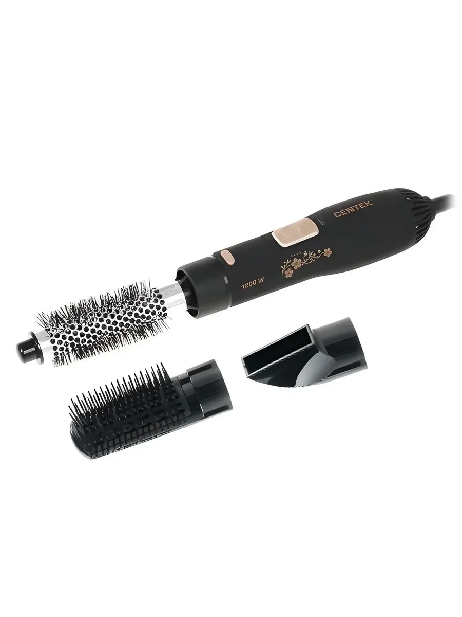 CENTEK CT-2059 Фен-щетка Фен-щетка Centek CT-2059 (золото/черн) 1200 Вт, КРУГЛАЯ ЩЁТКА, 3 насадки, 2 скорости, 2 температуры