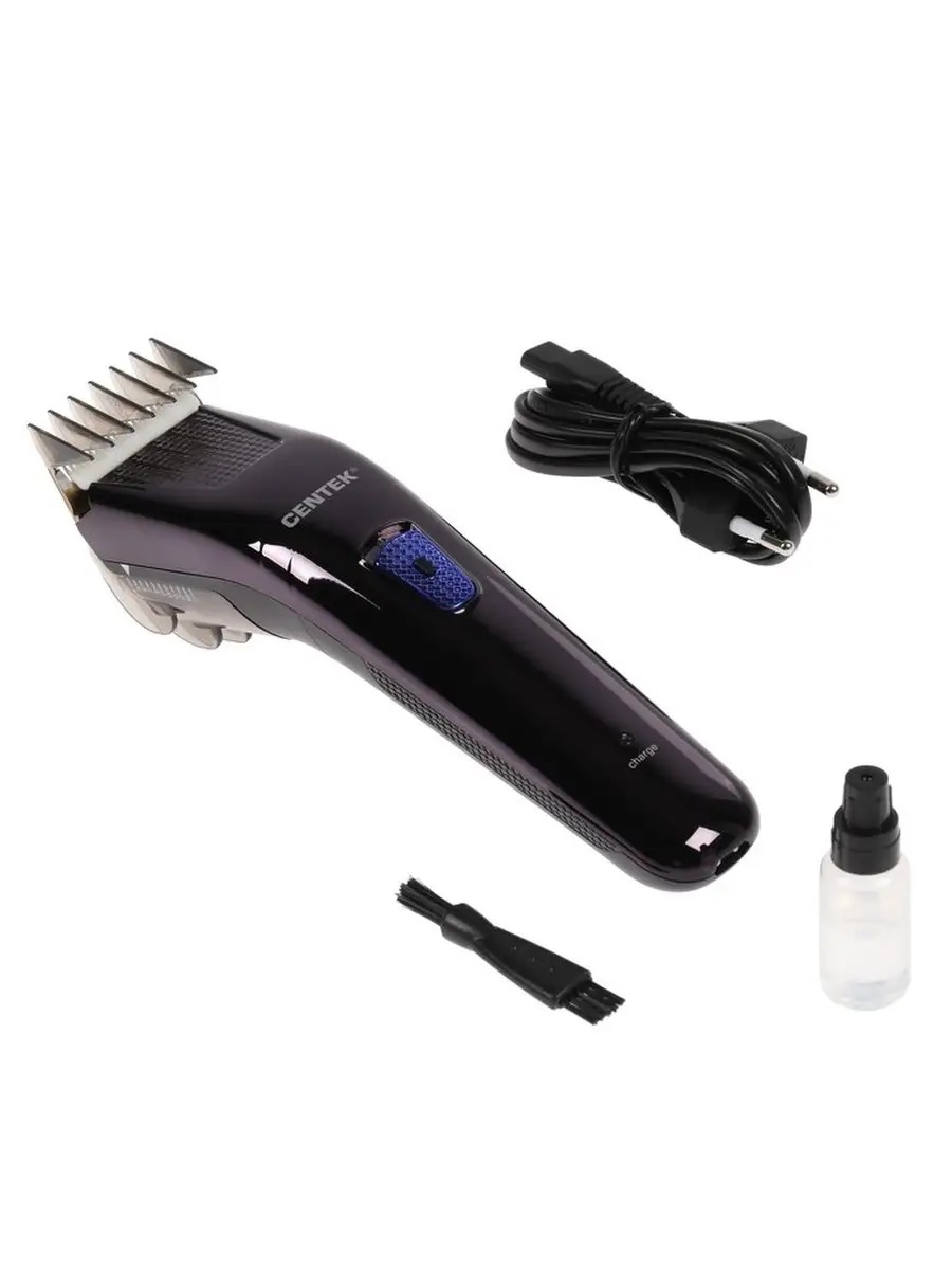 Centek CT-2122 Hair Clipper, 7 Watt, 3-21 mm, Titanium Blades, Purple. This Centek hair clipper has 11 cutting length settings, from 3 to 21 mm. It features ceramic blades and titanium blades, and a built-in battery, allowing it to operate autonomously for 60 minutes.