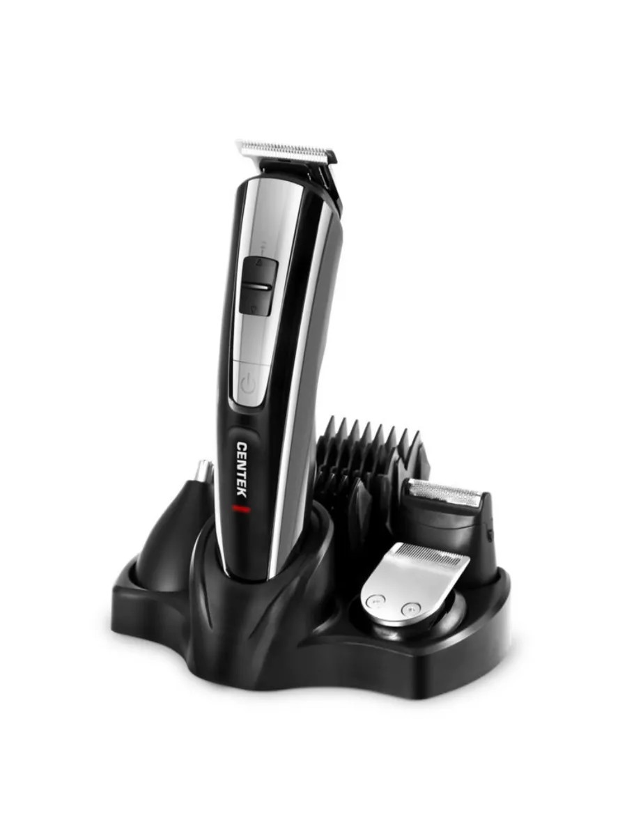 The Centek CT-2133 4-in-1 Hair Clipper is a set that includes a hair clipper, razor, and nose trimmer all in one, housed in a convenient charging and storage stand. The set includes four attachment combs (3, 6, 9, and 12 mm), allowing you to select the desired hair length during your trim. High-quality, perfectly sharpened stainless steel blades stay sharp for a long time, while the ergonomic body and convenient on/off buttons ensure maximum convenience. The razor attachment ensures an easy and close shave. The razor head is made of a special alloy that is highly durable, chemical-resistant, and glides smoothly. The styler attachment is essential for trimming sideburns, beards, and moustaches. The trimmer attachment helps remove unwanted hair from your nose and ears. An energy-efficient Ni-Cd battery with a capacity of 2x600 mAh provides up to 45 minutes of battery life, making it ideal for business trips and travel. The device delivers 3W of power and fully charges in 8 hours. The grooming kit includes: a clipper, a razor attachment, a styler attachment, a nose trimmer attachment, 4 interchangeable comb attachments (3, 6, 9, and 12 mm), a charging and storage stand, a blade cleaning brush, and oil.