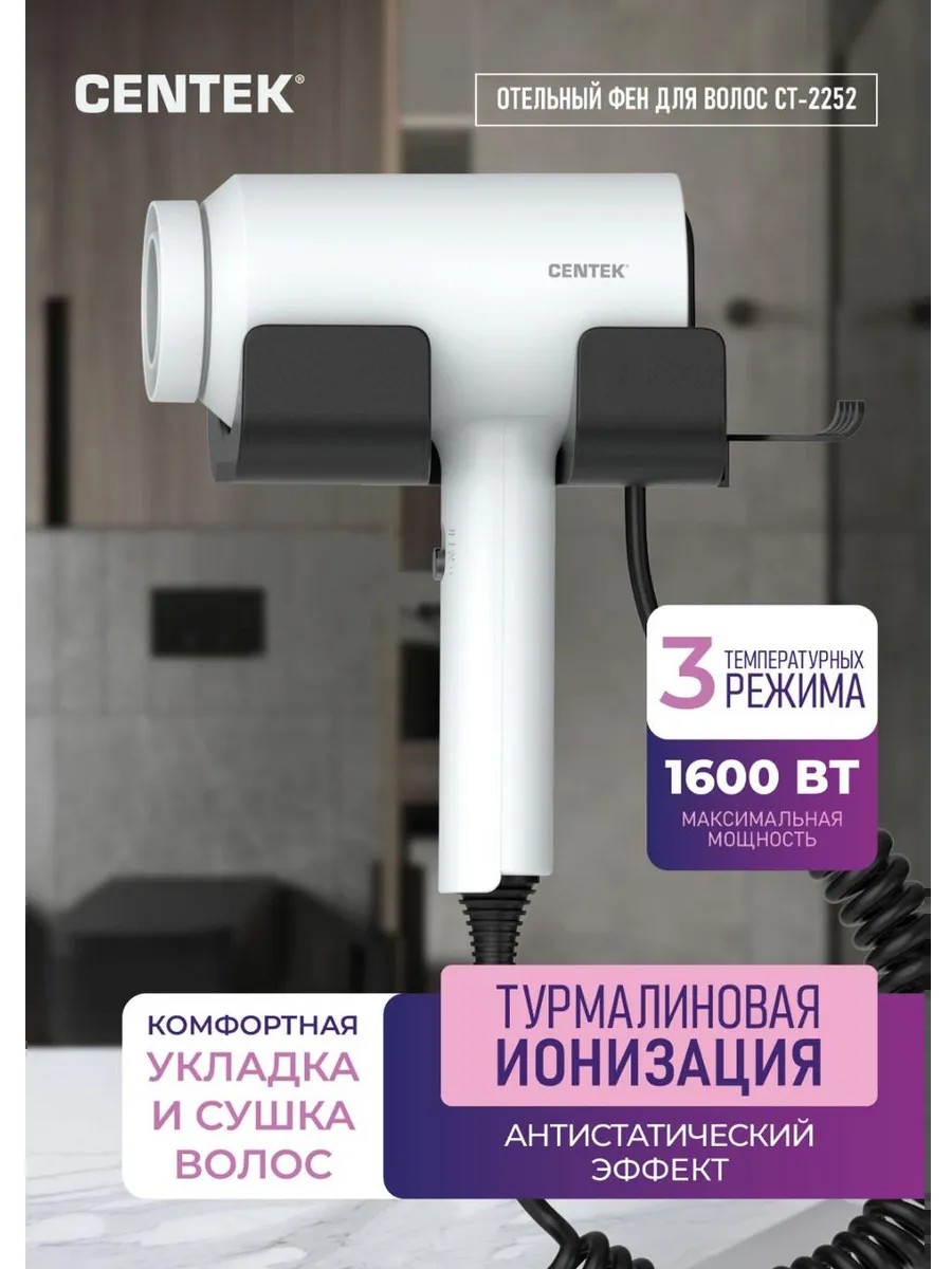 The CT-2252 hair dryer is a professional solution for drying and styling hair, especially suitable for high-traffic areas where constant access to the device is required.