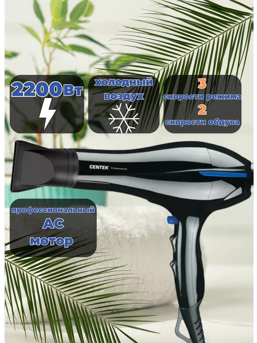 CENTEK мощный фен с профессиональным двигателем CT-2227