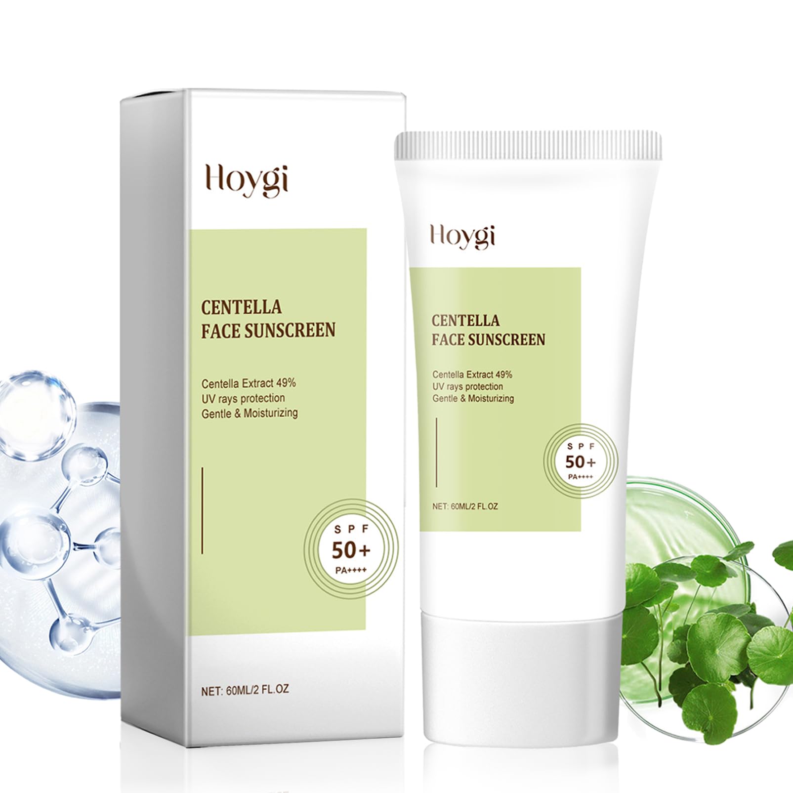 Centella Sunscreen SPF50+ PA++++ Centella Sunscreen SPF 50, Water-fit Sun Serum Sunscreen, Korean Sunscreen, Centella Skincare Moisturizing, No Sticky Refreshing Universal Sunscreen This sunscreen for face protects healthy skin from the outside against UVA/UVB rays and from High Energy Visible Light effects such as premature skin ageing. Sunscreen spf 50 face also protects the skin from the inside thanks to a powerful natural antioxidant that fights the appearance of sun-induced fine lines, wrinkles and pigment spots. Product benefits: 1. High SPF 50+,PA++++ Outdoor long-lasting sun protection 2. Protects against UVA/UVB rays and premature skin ageing 3. Moisturize skin, A soft, lightweight, non-greasy texture 4. Reduce dark spots 5. Suitable for all skin types 6. Sun bum sunscreen perfect for beach day, travel, outdoor running, camping, picnic all activities, lightweight and easy to carry, you can put it in your bag or pocket. How To Use: 1. At least 15 minutes before sun exposure, apply two-finger lengths of face sun cream on the face and neck. 2. Apply generously to all other areas of skin exposed to sunlight. 3. Reapply every two to three hours during the day and immediately after towel drying, swimming, or perspiring. Specification: Name: Suncream Face SPF 50 Net Content: 60ML Shelf life: 3 years SAFETY WARNING no???Effective Skincare Face Cream With Spf?Regular use of this moisturizing centella face sun cream spf 50 helps prevent tanning, spf 50 face moisturiser preserving skin health and youthfulness for a radiant complexion. ???Waterproof Sunscreen?Face SPF 50 high power sunscreens, no fear of rays, resist summer, delay radiation. Sun cream face helps keep your skin protected from the sun during outdoor activities like hiking, biking, boating gardening or simply going for a walk. ???Refreshing & Non-Sticky Texture?This sunscreen for face has a lightweight texture, does not leave a greasy feeling on the skin, making sunscreen spf 50 face suitable for use on various skin types. Using spf face sun cream everyday helps protect the skin from UVA and UVB rays, repairing visible signs of aging and damaged skin. ???Natural Ingredients?Experience the blend of nature and skincare! Sunscreen face Enriched with the goodness of Centella Asiatica, using this sun gel feels like a daily spa treat. Let nature nourish your skin, leaving you with a rejuvenated complexion. ???Hydrating Centella Sunscreen SPF 50?This centella-infused sunscreen combines powerful moisturizing elements with sun protection. The function of face sunscreens is not only to prevent UV rays, but also to calm the skin. Face suncream provide strong sun protection with SPF 50+PA+++, resist UV rays, and sun screen help the skin stay moisturized, shielding the skin during outdoor activities while keeping it nourished.