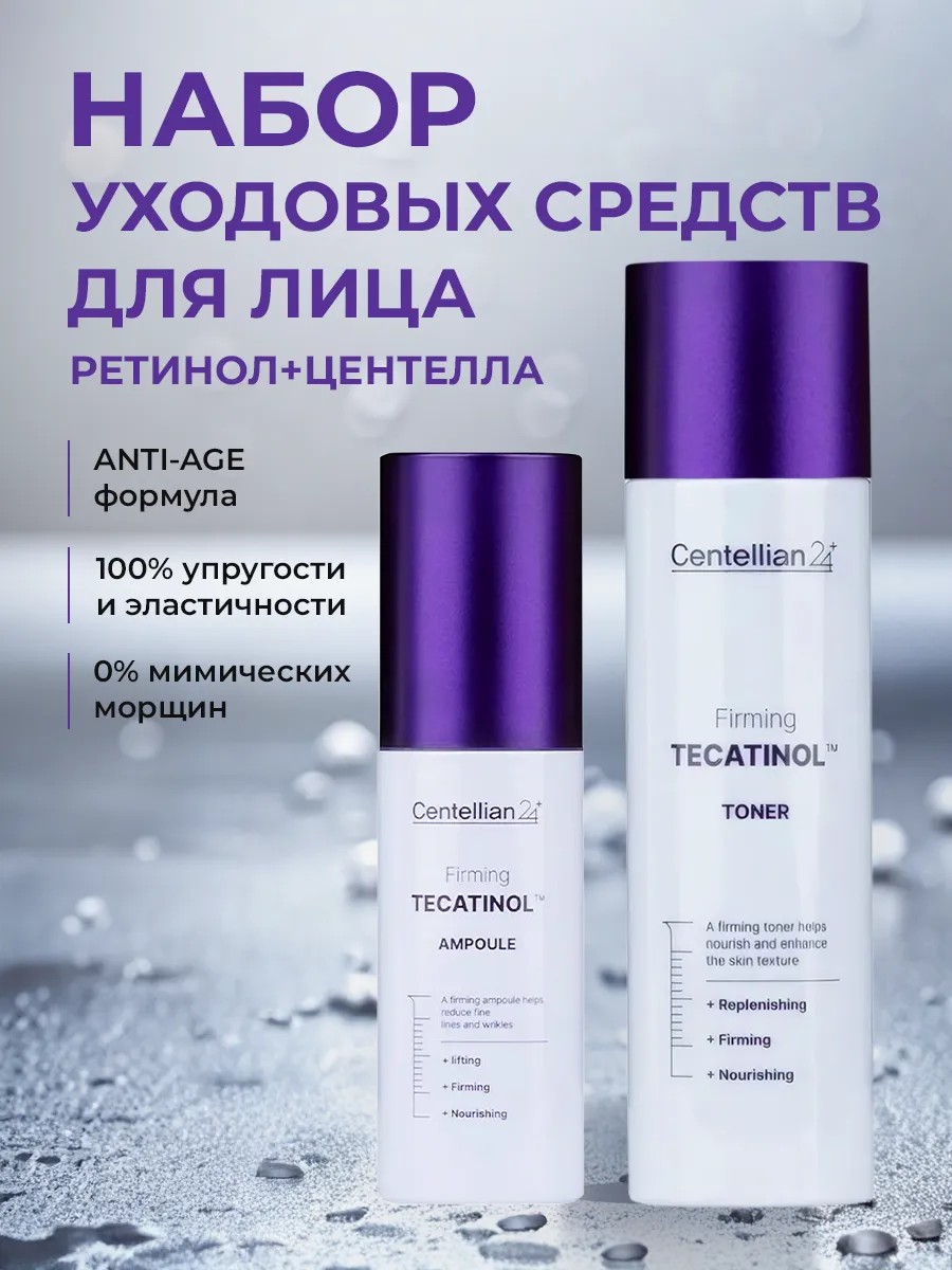 Набор корейской уходовой косметики направлен на интенсивное восстановление, питание, увлажнение кожи, антивозрастной уход. Лифтинг-сыворотка от морщин Centellian24 Firming Tecatinol Ampoule восстанавливает эластичность кожи, повышает тургор и упругость. Помогает в борьбе с возрастными изменениями: разглаживает заломы, уменьшает глубину морщин и предотвращает их появление. Подтягивает и формирует овал лица, препятствует птозу. Тонер Centellian24 Firming Tecatinol Toner увлажняет сухую кожу после умывания, восстанавливает ее естественное состояние благодаря увлажняющей формуле, которая восполняет потерю влаги кожи сразу после умывания. Не оставляет липкого слоя.