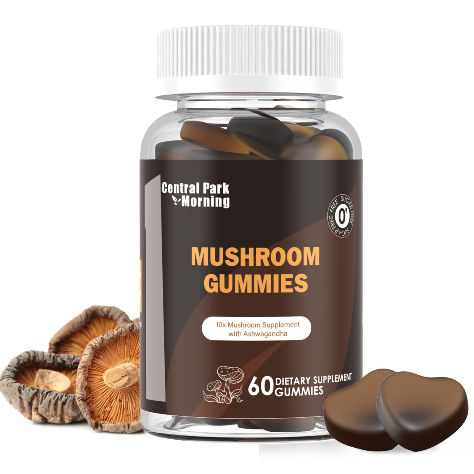 Central Park Morning Mushroom Gummies, 10 Blend - Lion's Mane, Turkey Tail, Reishi, Chaga, Cordyceps Mushroom with Ashwagandha, Brain Supplements for Memory and Focus