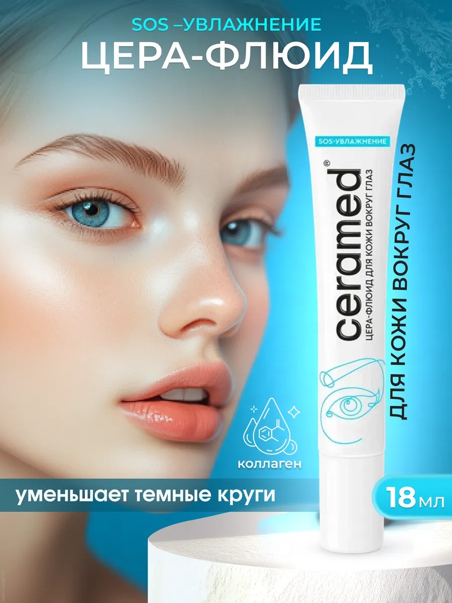 Ceramed Цера флюид для кожи вокруг глаз SOS-увлажнение 18мл. Подходит для всех типов кожи, особенно для сухой, чувствительной и склонной к раздражению кожи.