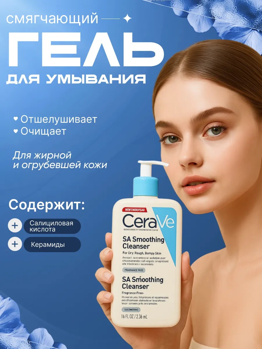 CeraVe Смягчающий очищающий гель для сухой, огрубевшей и неровной кожи