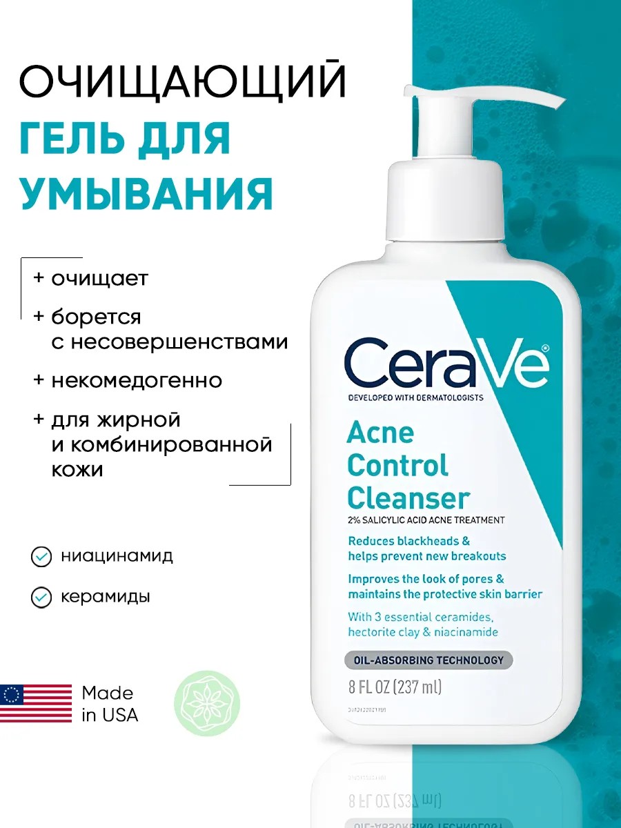 CeraVe Умывалка гель для лица от прыщей Acne Control Cleanser 237 мл