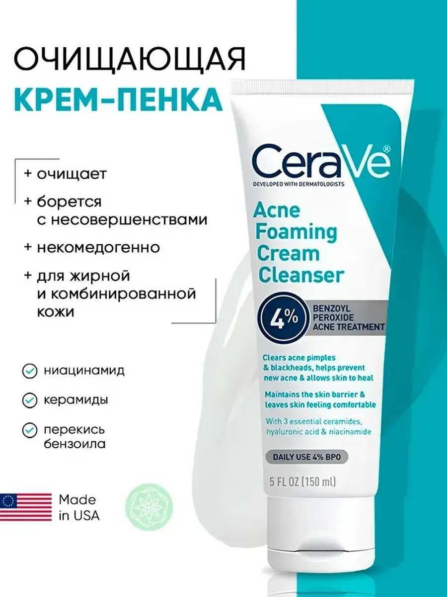 | Комплектация | Cerave Очищающая крем-пенка от прыщей 4% CeraVe 150 мл |