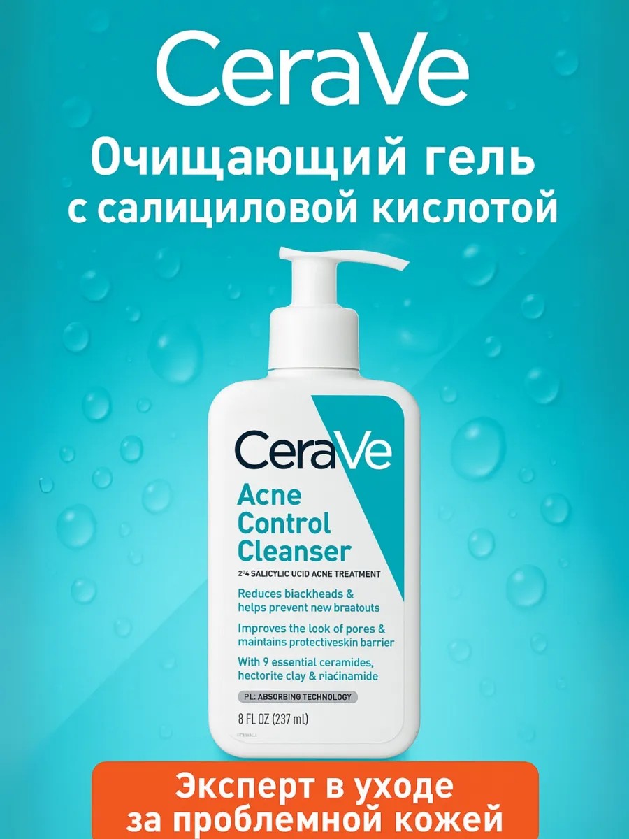CeraVe Acne Control Cleanser подходит для всех типов кожи, включая жирную, нормальную, комбинированную и сухую.