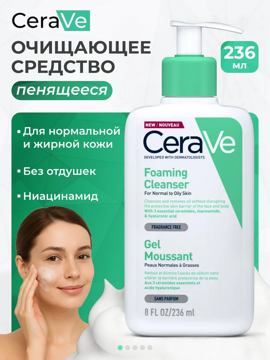 CeraVe Foaming Cleanser — очищающий гель для умывания лица и тела, разработанный совместно с дерматологами. Подходит для нормальной, жирной и проблемной кожи, склонной к высыпаниям и черным точкам.