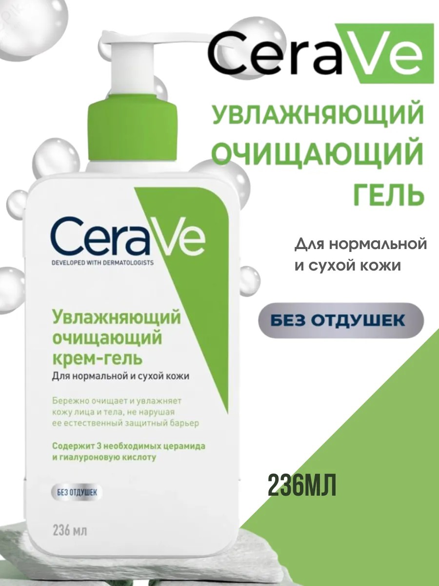 Крем-гель для умывания Цераве CeraVe Hydrating Cleanser 236мл - настоящий помощник в бережном очищении лица и тела. Очищающая и одновременно увлажняющая формула геля нежно заботится о Вас. Гипоаллергенный состав подходит для всех типов кожи: нормальной, сухой, комбинированной и чувствительной. Умывашка эффективно очищает и увлажняет кожу, способствует восстановлению защитного барьера. Она отлично удаляет макияж и помогает в борьбе с проявлениями постакне.