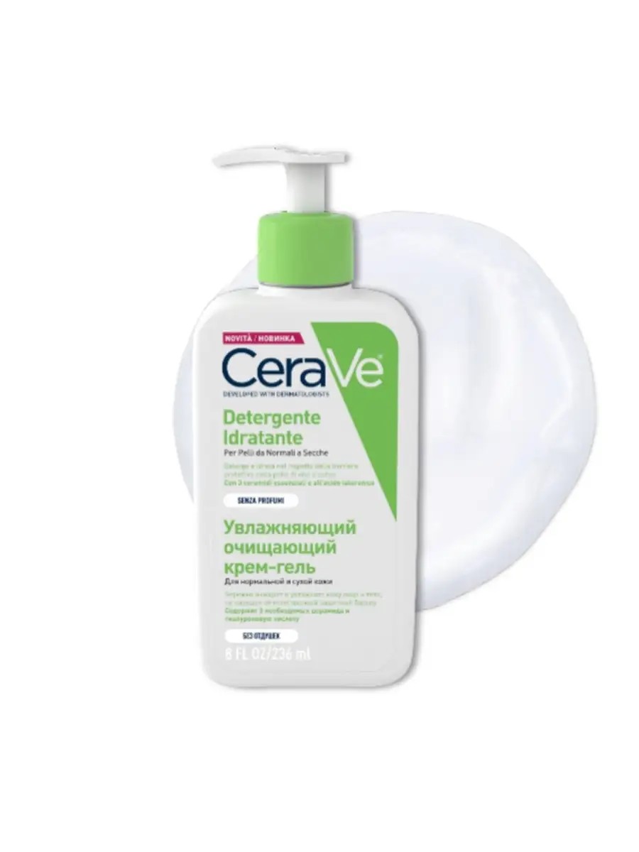 CeraVe Увлажняющий очищающий крем-гель эффективно очищает и увлажняет кожу,способствуя восстановлению ее защитного барьера.Не образующий пену крем-гель нежно удаляет грязь, кожное сало и подходит для удаления макияжа.Обеспечивает интенсивное увлажнение кожи уже после первого применения.Особенности продукта:Технология MVE - постепенное высвобождение активных ингредиентов для длительного увлажнения;Подходит для любого типа кожи;Без мыла;Без парабенов;Без отдушки;Некомедогенно - не закупоривает поры;СПОСОБ ПРИМЕНЕНИЯ : Нанести на влажную кожу лица и тела , смыть . Избегать прямого контакта с глазами . В случае попадания в глаза промыть достаточным количеством воды . Подходит для кожи , склонной к атопии .