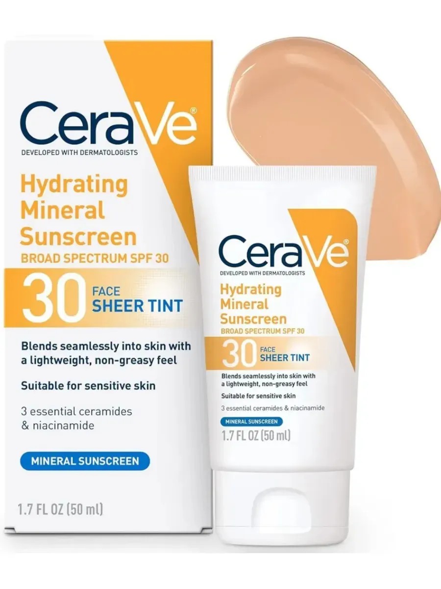 Увлажняющий минеральный солнцезащитный крем-лосьон для лица CeraVe с широким спектром SPF 30 — это 100%-минеральный, безмасляный солнцезащитный крем с диоксидом титана и оксидом цинка , который образует защитный барьер на поверхности вашей кожи, помогая отражать солнечные лучи UVA и UVB, не раздражая чувствительную кожу.