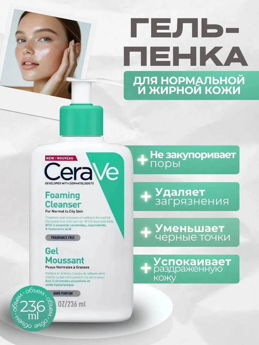 При выборе средства для умывания для нормальной и жирной кожи важно искать формулу, которая будет глубоко очищать, не нарушая естественный барьер влаги вашей кожи. CeraVe Foaming Facial Cleanser содержит керамиды , гиалуроновую кислоту и ниацинамид и помогает поддерживать защитный барьер кожи, удерживать влагу и успокаивать кожу. Разработанное совместно с дерматологами, это средство для умывания без высыхания для нормальной и жирной кожи глубоко очищает, удаляет излишки жира и освежает кожу, не нарушая кожный барьер. Это очищающее средство для лица на основе геля является эффективным, но щадящим способом очищения и ухода за нормальной и жирной кожей. Пенка содержит только мягкие безопасные ПАВы, которые создают пышную воздушную пену и эффективно очищает кожу от загрязнений, удаляют следы макияжа и освежают кожу. Пенка интенсивно увлажняет, предотвращая пересушивание, делает кожу гладкой и мягкой.