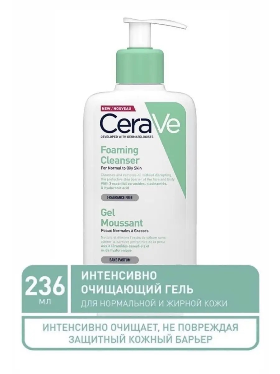 Интенсивно очищающий гель cerave для кожи склонной к жирности глубоко очищает и освежает кожу, удаляя излишки кожного сала и загрязнения. Не нарушая защитный кожный барьер. Гипоаллергенный гель серави содержат комплекс из церамидов. Cerave очищающий гель 236 мл - подходит для проблемной кожи, нормальной и жирной кожи, акне и прыщам. Cerave очищающий гель для умывания и для снятия макияжа. Интенсивно очищающий гель с церамидами обеспечивает интенсивное увлажнение кожи уже с первого раза применения. cerave интенсивно очищающий гель для умывания без сульфатов без мыло без парабенов и без отдушек. Очищающий гель для умывания цераве превращающийся в интенсивную пену позволит вам сделать полноценный уход. Некомедогенно не закупоривает поры, сокращают потерю влаги кожей, уход за телом уход за кожей это важнейшие основы нашей жизни. Серави для умывания хорошо увлажняет кожу и ничем не уступает другим уходовым косметикам как Bioderma, La roche-posay, Vichy, Loreal. Cera ve может заменить множества корейские косметики по уходу лица и тела. Умывалка cerave отличный подарок на 8 марта, Подарок жене, на день рождения, для себя.