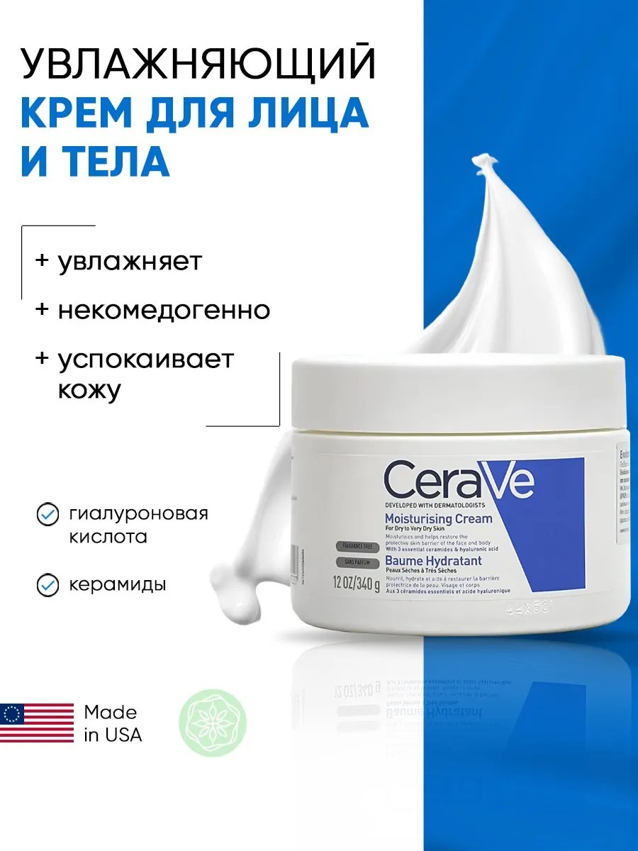 Восстановите сухую, неудобную кожу с помощью увлажняющего крема CeraVe — богатой увлажняющей и питательной формулы, которая обеспечивает сухую, чувствительную кожу всем необходимым увлажнением. Обволакивающий, но не жирный, увлажняющий крем содержит три незаменимых керамида и гиалуроновую кислоту, которые взаимодействуют, увлажняя и защищая естественный барьер кожи. Крем сохраняет увлажнение в течение дня, используя технологию высвобождения MVE для контролируемого высвобождения ингредиентов и, таким образом, обеспечивая 24-часовое увлажнение. Деликатно воздействует на кожу, оставляет участки, склонные к зуду и дискомфорту, мягкими и пухлыми. Разработано дерматологами. Подходит для сухой и очень сухой кожи. Не содержит отдушек.