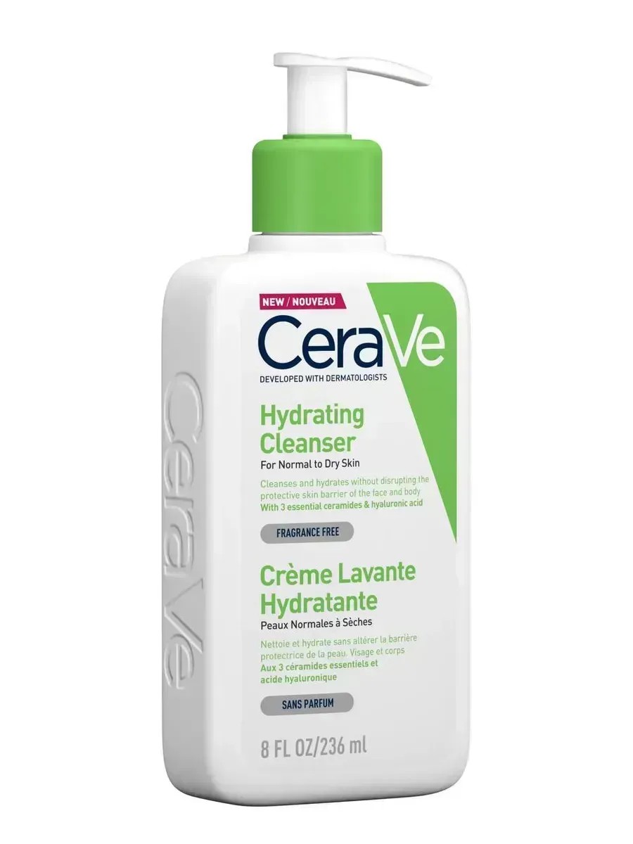 Очищающее средство может удалить грязь и макияж, но увлажняющее очищающее средство, такое как CeraVe Hydrating Cleanser, может сделать все это, не нарушая естественный защитный барьер кожи и не лишая её естественной влаги. CeraVe Hydrating Cleanser, созданный совместно с дерматологами, представляет собой мягкое средство для умывания лица с такими ингредиентами, как керамиды и гиалуроновая кислота, которые восстанавливают естественный барьер кожи, помогая коже удерживать влагу. CeraVe Hydrating Cleanser был разработан, чтобы очистить и освежить кожу, не стягивая ее и не оставляя ощущения стянутости и сухости. Содержит гиалуроновую кислоту для увлажнения кожи и 3 основных керамида, которые вместе удерживают влагу в коже и помогают восстановить ее защитный барьер. Технология доставки MVE инкапсулирует керамиды, чтобы обеспечить эффективную доставку в пределах кожного барьера и медленное высвобождение с течением времени. Поддерживает защитный кожный барьер еще долгое время после того, как вы закончите нанесение. Этот некомедогенный гель для умывания является эффективным, но не раздражающим средством для начала любого режима ухода за кожей. Лучше всего подходит для нормальной и сухой кожи.