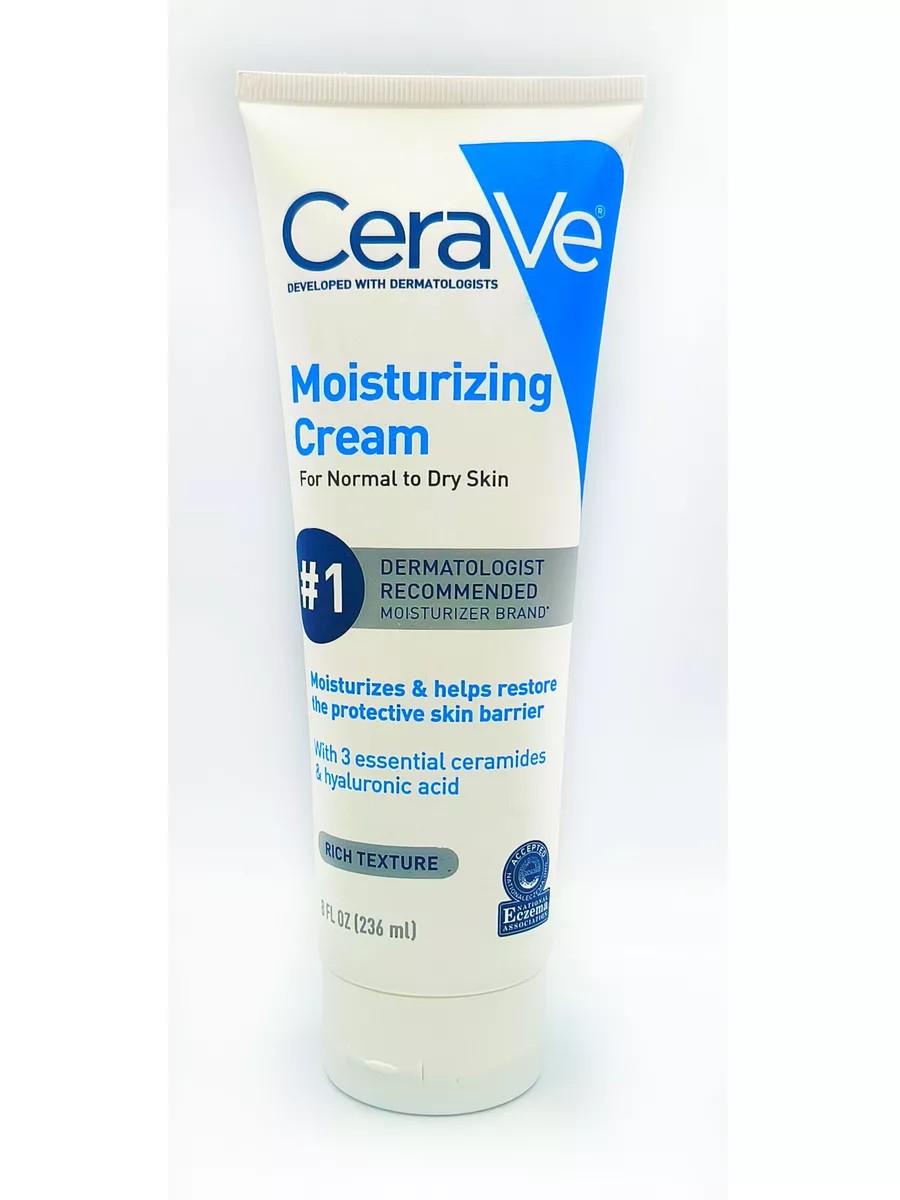 Увлажняющий крем CeraVe Moisturizing Cream с керамидами и гиалуроновой кислотой для сухой кожи, некомедогенный, 236 мл. Этот увлажняющий крем создан для обеспечения вашей кожи длительным увлажнением и защиты. Благодаря легкой и нежирной формуле с тремя незаменимыми керамидными комплексами и гиалуроновой кислотой, крем помогает восстанавливать и укреплять защитный барьер кожи. Продолжительное увлажнение: Уникальная MVE-технология обеспечивает длительное увлажнение в течение всего дня, поддерживая естественный уровень влажности кожи. Комплекс керамидов: Три незаменимых керамидных комплекса помогают восстанавливать и поддерживать защитный барьер кожи, предотвращая потерю влаги. Гиалуроновая кислота: Формула обогащена гиалуроновой кислотой, которая помогает коже оставаться увлажненной и упругой в течение длительного времени. Подходит для всех типов кожи: Идеально подходит для сухой и очень сухой кожи, обеспечивая необходимый уход и комфорт. Многофункциональность: Подходит для использования как на лице, так и на теле, делая вашу кожу мягкой и гладкой. Преимущества: Безопасный состав: Не содержит ароматизаторов и парабенов, гипоаллергенен и подходит для чувствительной кожи. Некомедогенный: Не забивает поры, что предотвращает появление акне и черных точек. Легкая текстура: Быстро впитывается, не оставляя жирного блеска, что делает его идеальным для повседневного использования. Как использовать: Наносите крем на чистую кожу лица и тела дважды в день или по мере необходимости. Особенно рекомендуется использовать после душа или ванны для максимального увлажнения. Ингредиенты: Aqua, Glycerin, Ceramide NP, Ceramide AP, Ceramide EOP, Hyaluronic Acid, MVE Delivery Technology, без ароматизаторов, парабенов и гипоаллергенные компоненты. Используйте этот увлажняющий крем, чтобы ваша кожа всегда оставалась здоровой, увлажненной и защищенной.