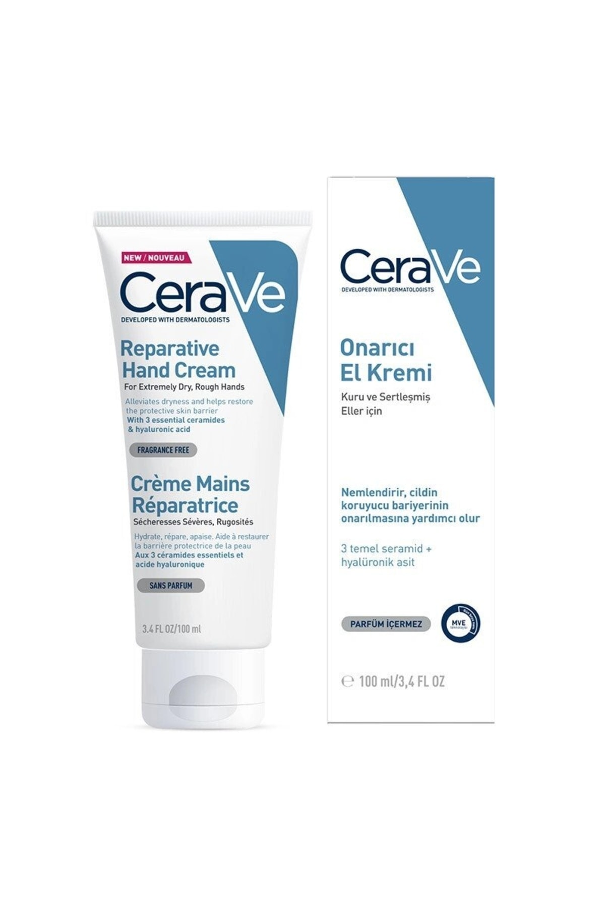 CeraVe Repairing and Moisturizing Hand Cream for Dry and Cracked Hands with Ceramide and Hyaluronic Acid 100ml