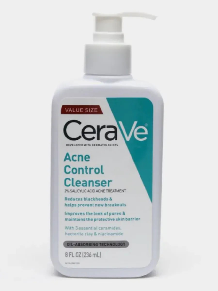 Гель для умывания лица и тела от прыщей Cerave Acne Control Cleanser специально разработанная формула для борьбы и предотвращения появления акне, комедонов, черных точек. В состав многофункциональной, очищающей умывалки для лица входит салициловая кислота, которая благодаря своим антисептическим и бактерицидным свойствам подавляет воспалительные процессы, глубоко очищает поры, способствует удалению ороговевших клеток, придает свежую, светлую текстуру, ускоряет процесс обновления, снижает излишнюю жирность, борется со старением и улучшает кровообращение. Уникальность увлажняющего, смягчающего средства для умывания кераве состоит в трех видах керамидов, из которых строится природная защита кожи. Они восстанавливают баланс, увлажняют, придают упругость, не вызывают шелушения и сухости. Очищающий гель пенка цераве гипоаллергенная, содержит только натуральные компоненты, не содержит отдушек, и подходит для чувствительной, сухой, жирной, проблемной, комбинированной и нормальной кожи лица и тела женщины, мужчины, подростка.