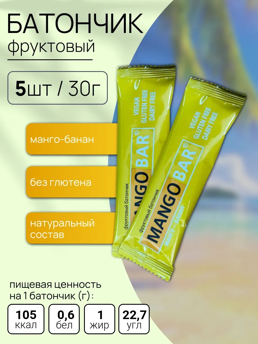 Батончик MANGO BAR – это вкусный и полезный перекус для тех, кто ценит натуральные ингредиенты и заботится о своем здоровье. Вкусовое сочетание сочного манго и спелого банана создает неповторимый тропический аромат, который поднимет настроение в любой момент дня. Каждый батончик MANGO BAR весит 30 грамм, что делает его идеальным вариантом для перекуса на работе, учебе или во время активного отдыха. MANGO BAR не содержит ГМО, глютена и консервантов, что делает его подходящим для тех, кто придерживается здорового образа жизни.