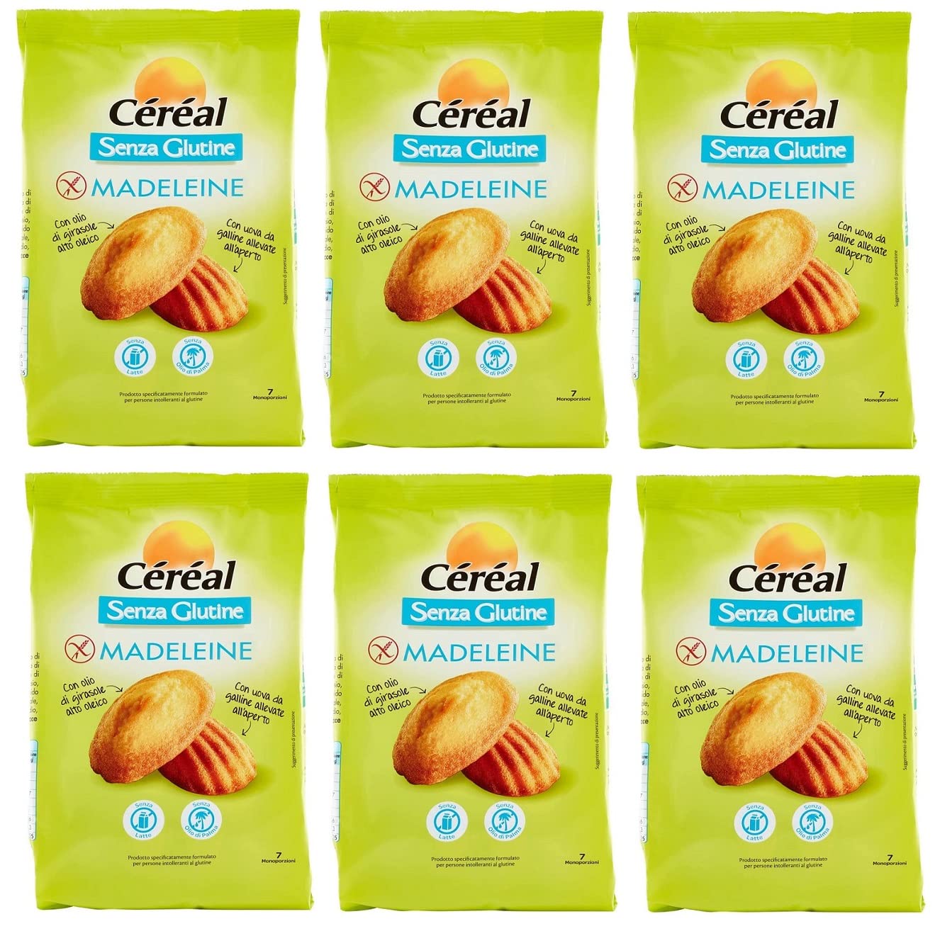 FOOD TABLE Averages per 100g: Energy 1766 kJ 422 Calories Fat 21g Of which saturates 2.4g Carbohydrates 54g Of which sugars 26g Fiber 2.1g Protein 4.5g Salt 0.87g. INGREDIENTS: egg, sugar, sunflower oil, rice flour, potato starch, dextrose, humectant: glycerin of vegetable origin glucose syrup, flavoring, thickener: guar flour rice starch, emulsifiers: lecithins flavoring, salt, raising agent: diphosphates, sodium carbonates, calcium phosphates. May contain traces of soy and nuts. - NO palm oil - with free-range chicken eggs - with high oleic sunflower oil - Milk free. Madeleine Cereal is dairy- and gluten-free and suitable both on its own and with milk or fruit juice for a nutritious and tasty breakfast or snack, specially designed for those who wish to eliminate gluten and dairy from their diet. Soft and flavorful, with no fillers, and a traditional taste, it lends a distinctive flavor to the palate.TABLEAU DES ALIMENTS Moyennes pour 100 g: Énergie 1766 kJ 422 Calories Lipides 21 g Dont acides gras saturés 2,4 g Glucides 54 g Dont sucres 26 g Fibres 2,1 g Protéines 4,5 g Sel 0,87 g. INGRÉDIENTS: oeuf, sucre, huile de tournesol, farine de riz, amidon de pomme de terre, dextrose, humectant : glycérine d'origine végétale sirop de glucose, arôme, épaississant: farine de guar amidon de riz, émulsifiants: lécithines arôme, sel, levure: diphosphates, carbonates de sodium, phosphates de calcium. Peut contenir des traces de soja et de fruits à coque. - SANS huile de palme - avec des œufs de poules en circulation libre -avec de l'huile de soleil à haute teneur en acide oléique -Sans lait. Madeleine Céréal est exempt de lait et de gluten et convient à la fois seul et accompagné de lait ou de jus de fruits pour un petit-déjeuner ou une pause nutritif et savoureux spécialement conçu pour ceux qui souhaitent éliminer le gluten et le lait de leur alimentation. Doux et savoureux sans remplissage, avec un goût traditionnel, il donne au palais un goût distinctif.