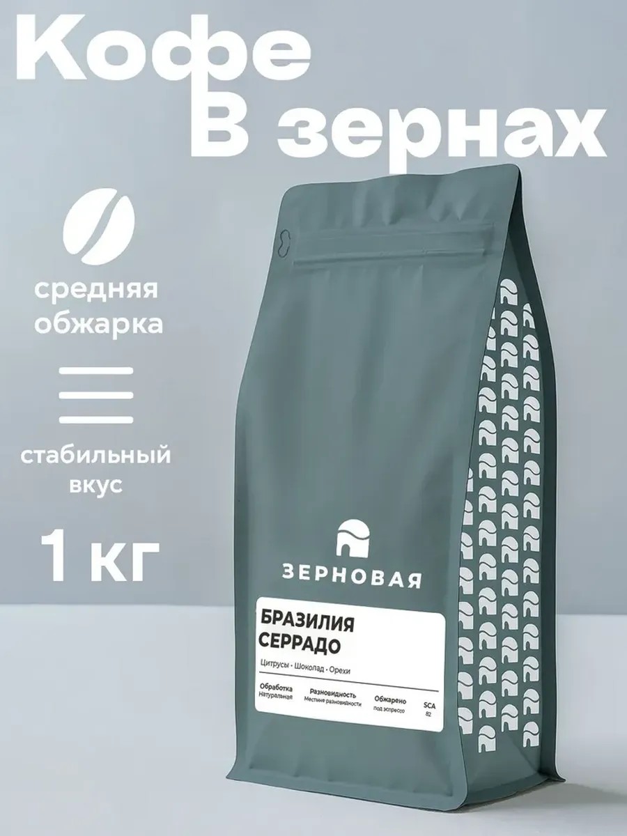 Зерновая Кофе в зернах 1 кг, 100% арабика, Бразилия Серрадо