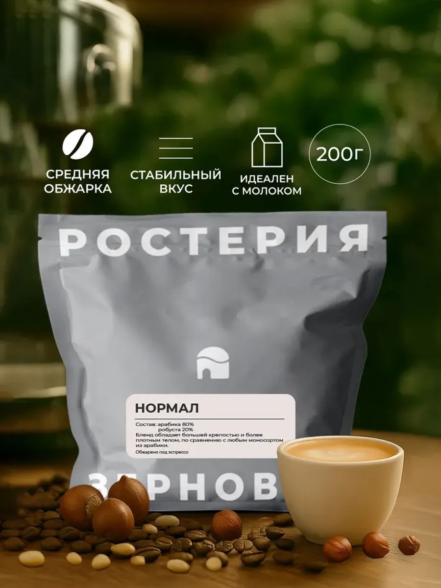 Зерновая Кофе в зернах 200 г, 100 % арабика, бленд "Нормал"