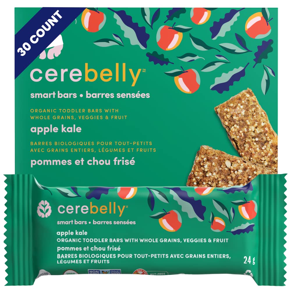 Cerebelly Organic Apple Kale Smart Bar Toddler Snack Bar 30-Pack Carton / Barres sens es Pommes et chou fris emballage de 30