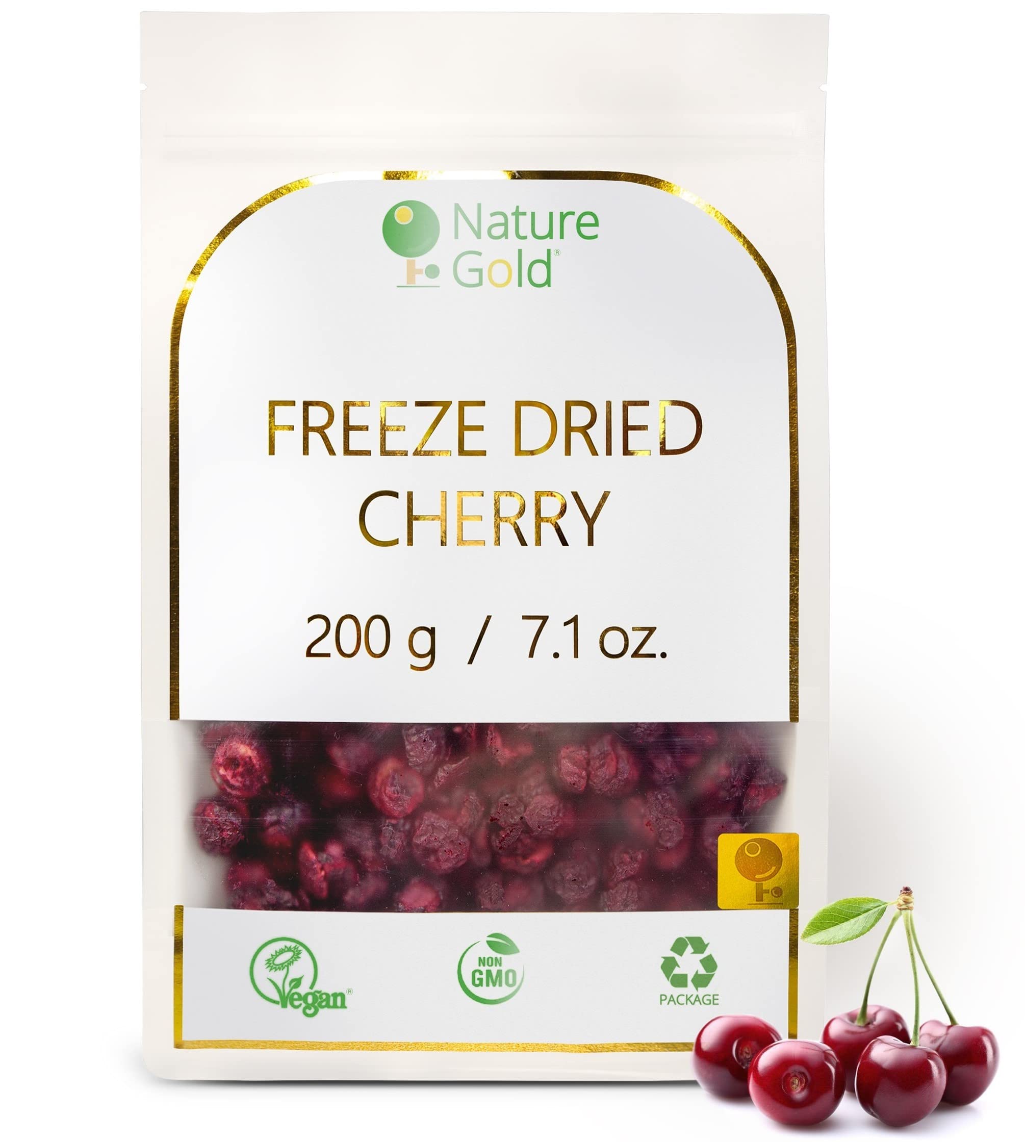 CONSUMER FOCUS: We want to listen to your opinions and needs. Our product was created for your satisfaction and healthy lifestyle. ? ECO-FRIENDLY PACKAGING: Environmentally friendly. Our packaging and labels are made from organic paper and materials, ensuring a high level of airtightness. DELICIOUS APPLICATION: Freeze-dried cherries can be used on sweet and savory dishes. They can be added to cereals, baked goods, muesli, yogurt, smoothies, and homemade ice cream. Freeze-dried cherries are also great as ingredients in hot and cold drinks. ? SUPERIOR QUALITY: We double-check the quality to ensure we offer you the best: A) certification of analysis during packaging B) laboratory testing at our EU-based facility. HEALTHY SUPERFOOD: 100 cherry with no additives, sugar or chemicals - natural origin certified by laboratories! The product is certified by the Vegan Society and contains no GMOs or gluten in the ingredients.