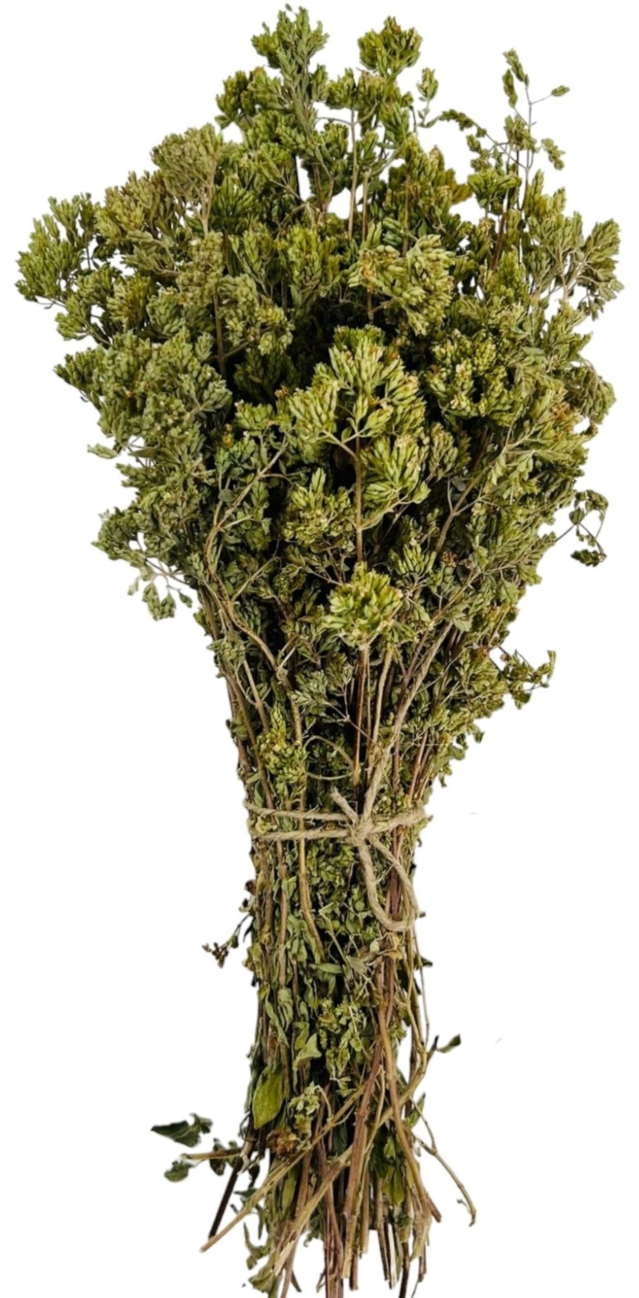 : A mountain oregano of excellent quality with a unique and strong aroma that makes it special. The production areas are located in the village of Isoma, at the foot of Mount Erimanthos, at an altitude of approximately 260 meters. The harvest is carried out traditionally without mechanical methods, and after sorting, the oregano undergoes a degreg process. It is then stored in specially prepared areas and packaged, guaranteeing its quality and proper preservation. This is a high-quality, certified organic product! Most herb enthusiasts agree that Greek mountain oregano is the most flavorful and arguably the best oregano in the world. A member of the mint family, Greek oregano is a robust and distinctive herb that has been used in sauces and marinades since ancient times. Its leaves contain more oil glands than common oregano, giving it the powerful and pungent flavor of the Mediterranean. Its name means "Joy of the Mountain." The Greek name origanon refers to oros, meaning "mountain," and the verb ganousthai, meaning "to delight," as oregano prefers the higher altitudes of the Mediterranean climate. Our wild Greek oregano is carefully hand-picked, packaged, and shipped immediately to guarantee the freshest flavor. We harvest two or three times during each growing season. The optimal harvest takes place in May and June. You simply can't buy herbs of this quality at a super price. 100 Organic Ingredients Oregano Bouquet