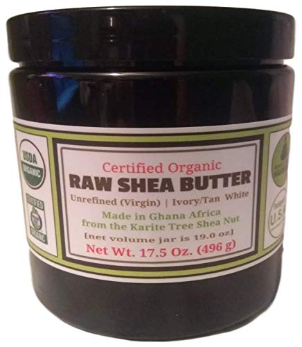 Premium Quality Shea Nut Butter: Unrefined, Virgin, Ivory White (Tan). Made in Africa. Non-comedogenic Natural Moisturizer. HUGE 17.5 oz. TALL Dark BPA FREE JAR - More Than a Full LB! Our BPA Free Amber Jar helps to Preserve and protect your Shea Butter's Nutrients from Harmful UV light!. SIMPLY THE BEST! Imported from Ghana, Africa. Made from the Karite Tree Shea Nut Extremely Rich in Vitamins A,D,E, F -Providing Your Skin Essential Antioxidants It Needs! For Use On Your Face, Body Hair In Its Natural State But Is Also Fantastic As An Ingredient In Homemade Natural Products Like Soap, Body Butters, Lotions Cremes, etc. REAL AUTHENTIC ORGANIC! CERTIFIED ORGANIC by Oregon Tilth [PLEASE SEE CERTIFICATE] Ensuring Your Shea Butter IS Free From Pesticides Other Contaminants! Authentic CERTIFIED ORGANIC!. Made in Africa From The Shea Nut. Best Natural Ingredient for DIY SKINCARE! Best Natural Non-Comedogenic Moisturizer (Does Not Block Pores!) Skin, Face, Body, Hair Moisturizer!.