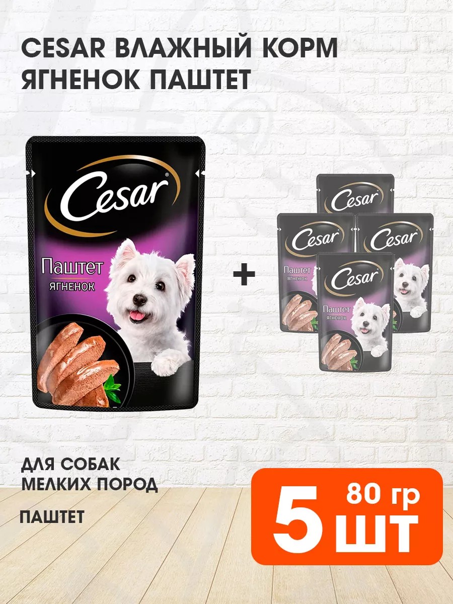 CESAR Корм влажный для мелких собак ягненок паштет 80 г 5 шт