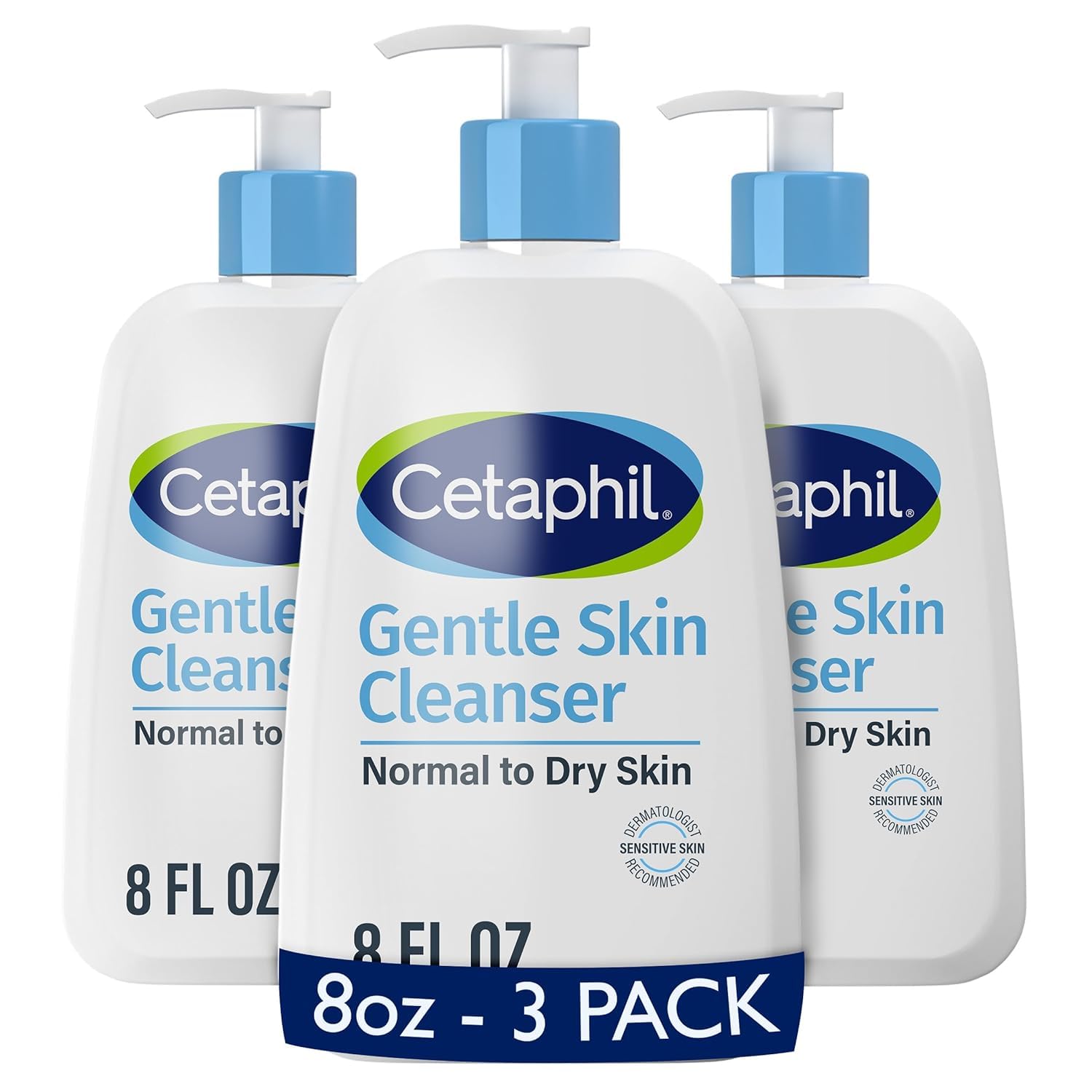 Cetaphil Face Wash Hydrating Gentle Skin Cleanser for Dry to Normal Sensitive Skin 8 oz Pack of 3 Fragrance Free Soap Free and Non-Foaming
