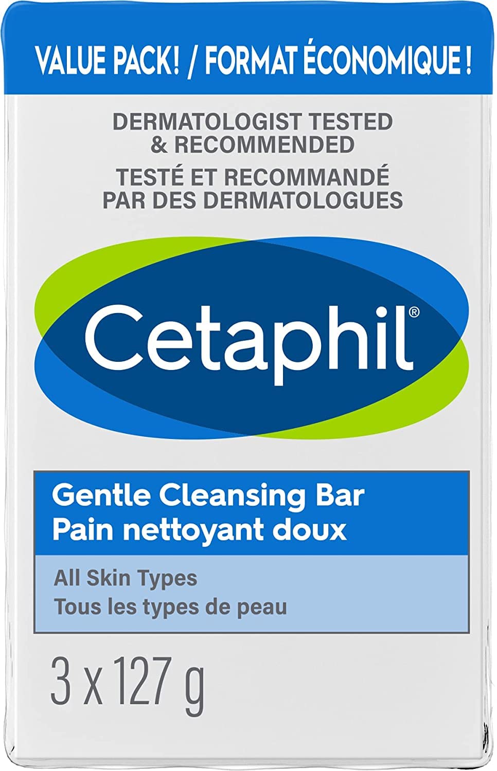 Cetaphil Gentle Cleansing Bar (3-Pack) 127g - Hydrating Foaming Face and Body Wash - For Sensitive Skin - Soap Free Hypoallergenic - Dermatologist Recommend 127 g (Pack of 3)