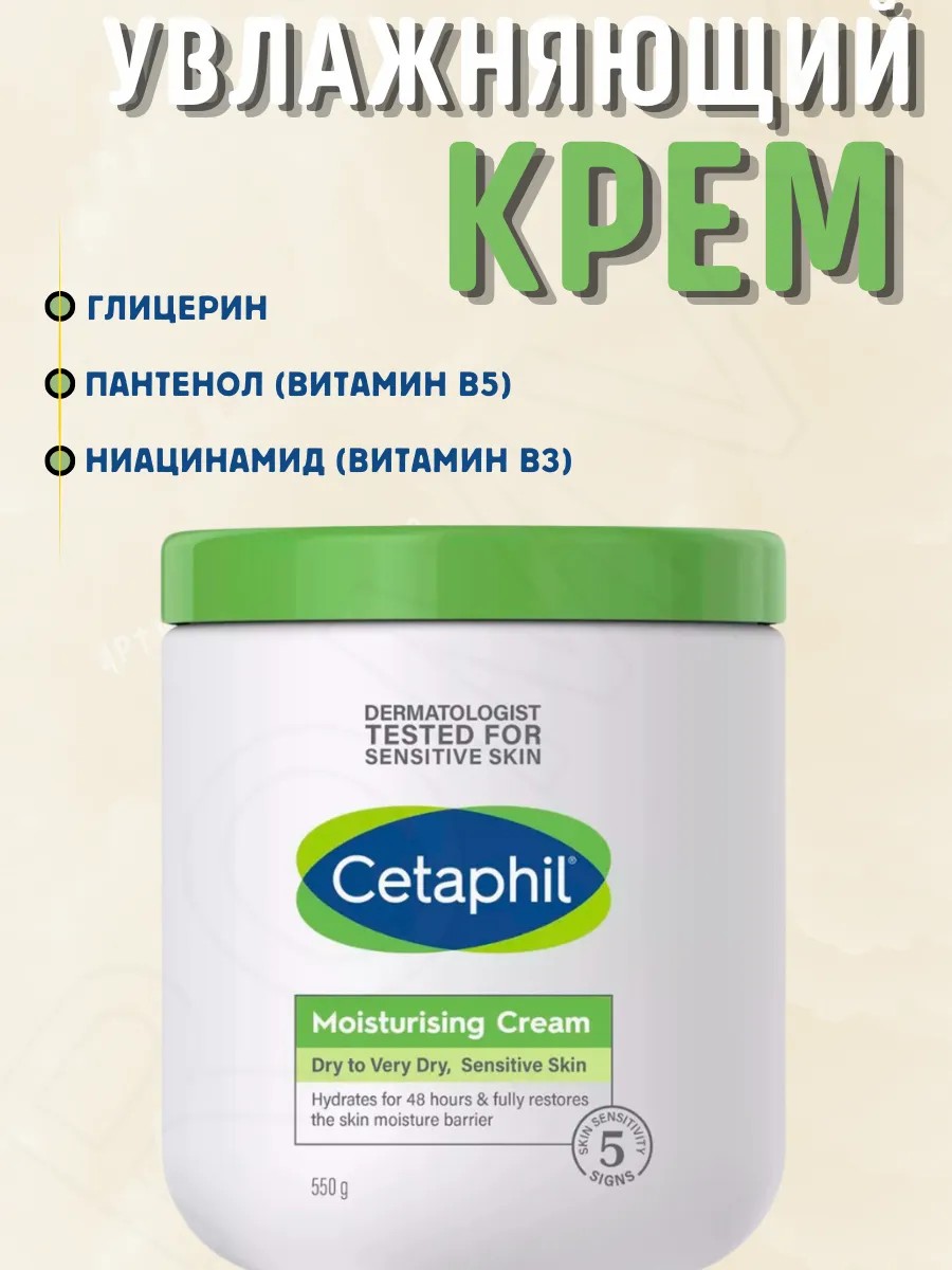 Cetaphil разработан специально для интенсивного ухода за сухой, очень сухой и чувствительной кожей. Это бренд №1, рекомендованный дерматологами во всем мире. Формула крема обеспечивает глубокое увлажнение, восстанавливает защитный барьер кожи и предотвращает обезвоживание на протяжении 48 часов, поддерживая комфорт и мягкость.